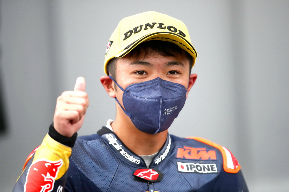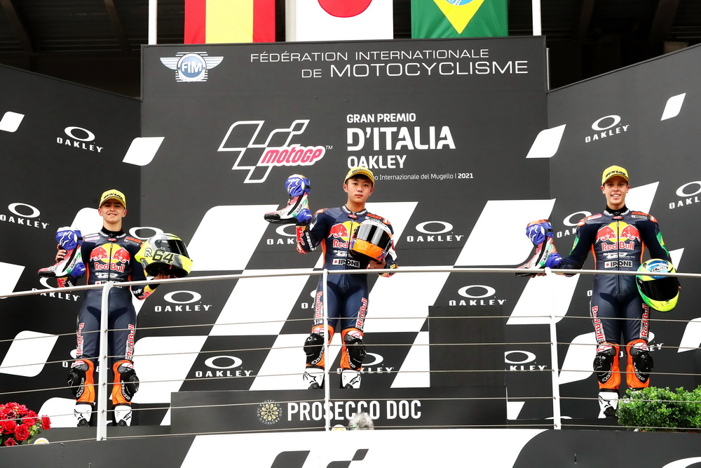 下面的圖片,2021' MotoGP 紅牛新秀杯意大利站比賽中的古里太陽(資料圖片)。