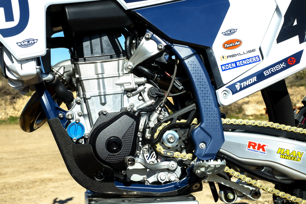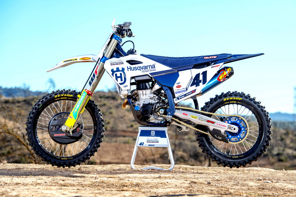 胡斯瓦那在 MXGP 級(jí)別的工廠賽車 FC450、以市售版的越野賽車為基礎(chǔ)改造而成,該車與 KTM 的 450 SX-F、GasGas 的 MC 450 F 屬于同平臺(tái)的車型。