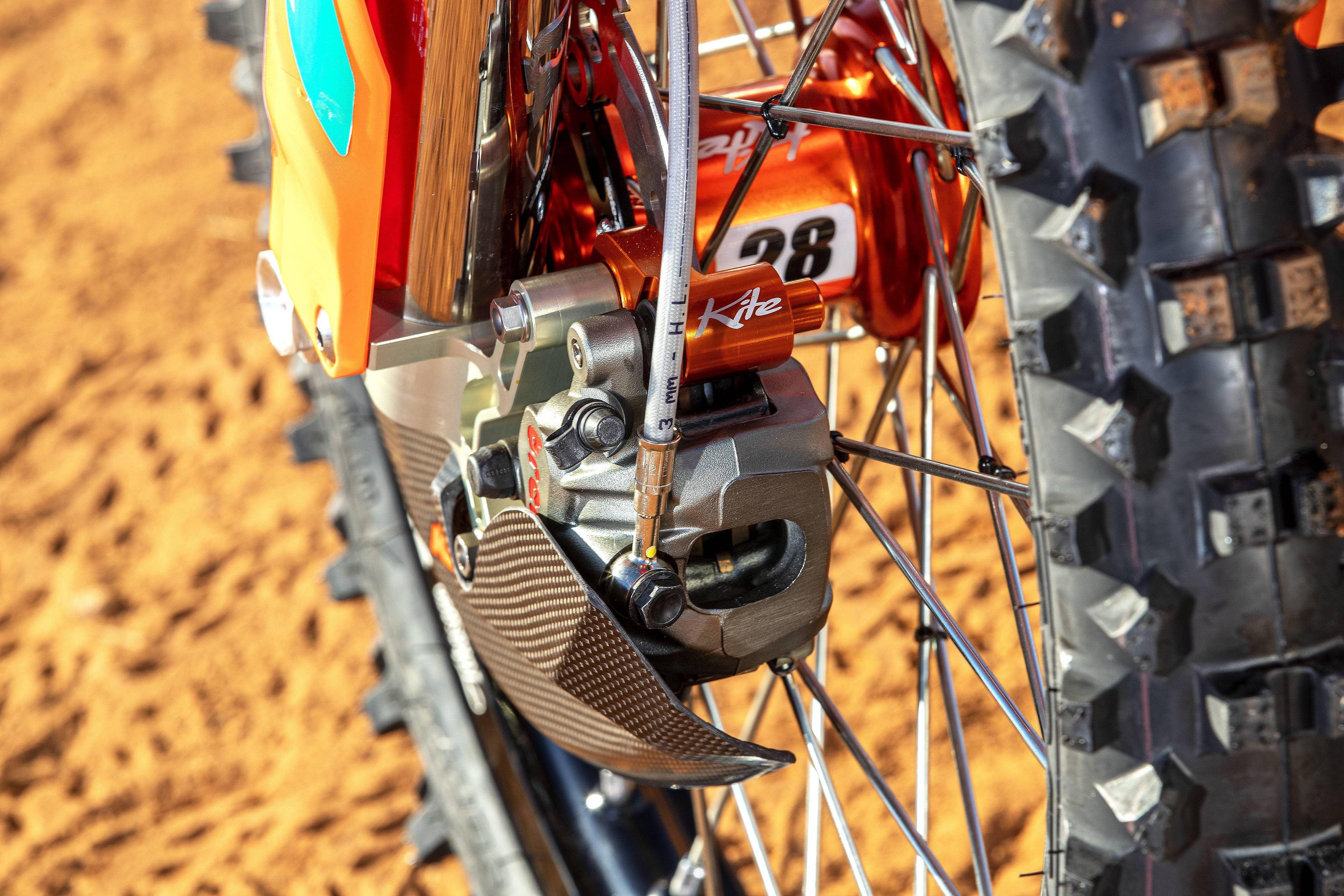 車體方面,鉻鉬鋼制的車架、壓鑄鋁制的后搖臂、副車架(尾樑)是全新的設(shè)計(jì)。其他多項(xiàng)的車體裝備,不是以碳纖維復(fù)合材料制成、就是以 CNC 加工而成。