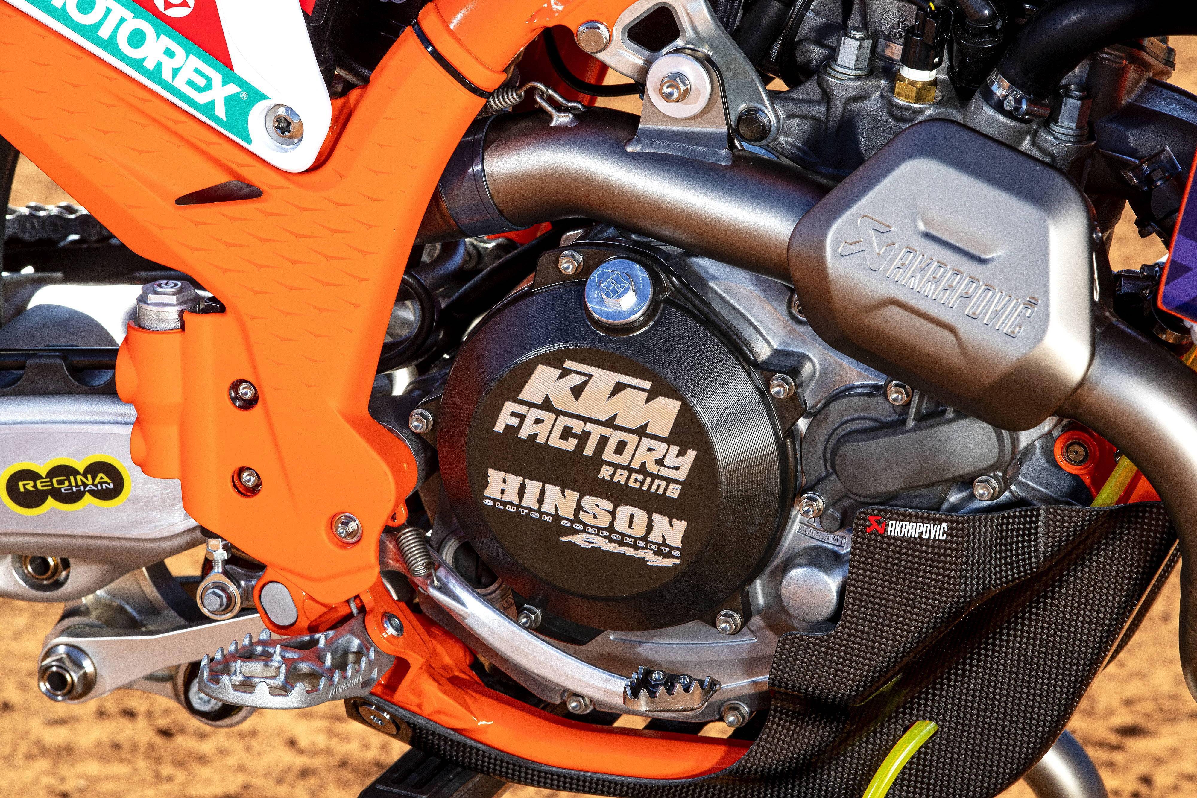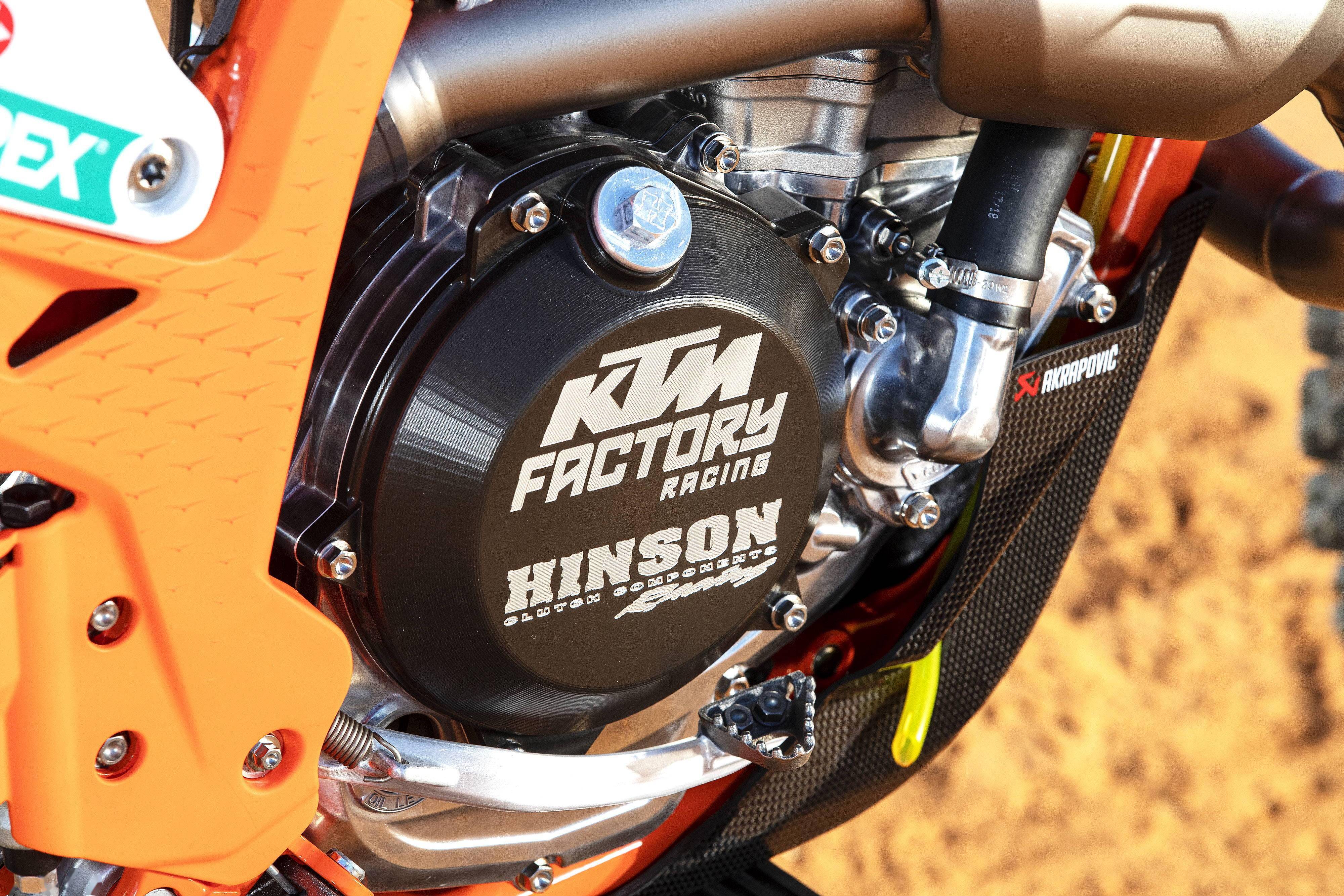 250 SX-F 有一副全新的發(fā)動機(jī):型式上保持了原有的水冷四沖程單氣缸、DOHC 四氣閥的規(guī)格,但缸徑、行程修改為 81 mm x 48.5 mm(上一版本的缸徑、行程為 78 mm x 52.3 mm),排氣量 249.9 cc,五檔的變速齒輪箱,同樣配備了電啟動、快速升檔系統(tǒng)、牽引力控制系統(tǒng)等。