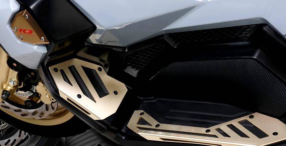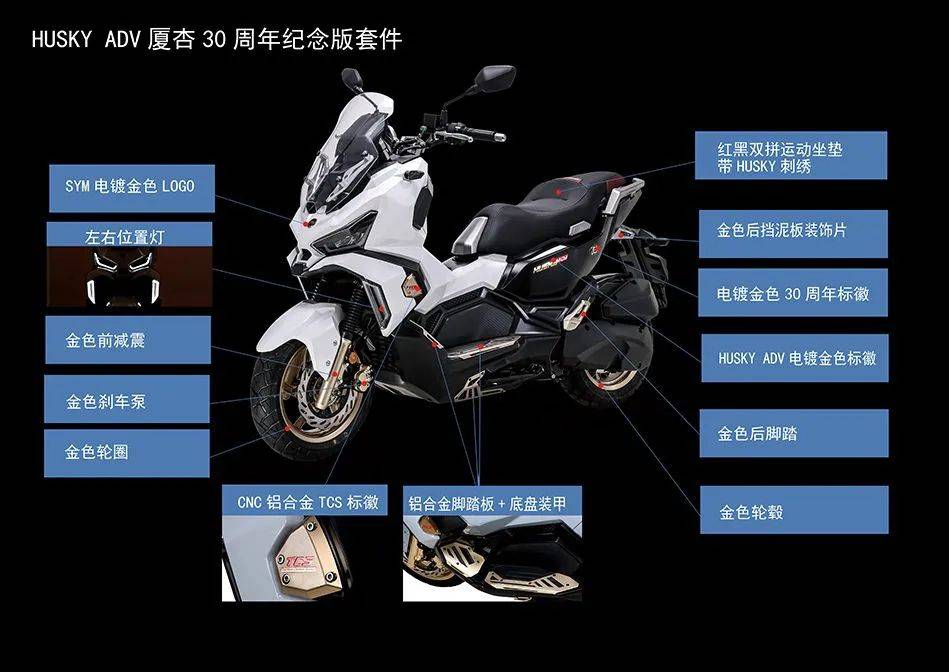 HUSKY ADV這次還有廈杏SYM 30周年紀念版套件,在腳踏、車身側蓋、車頭LOGO等處都換上搶眼的金色CNC套件取代,整臺車看起來金光閃閃,騎在路上絕對是眾人目光焦點。