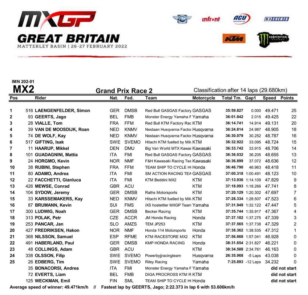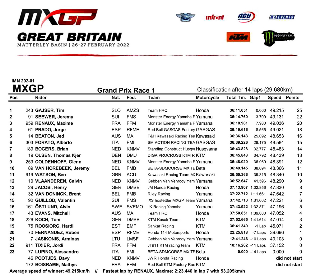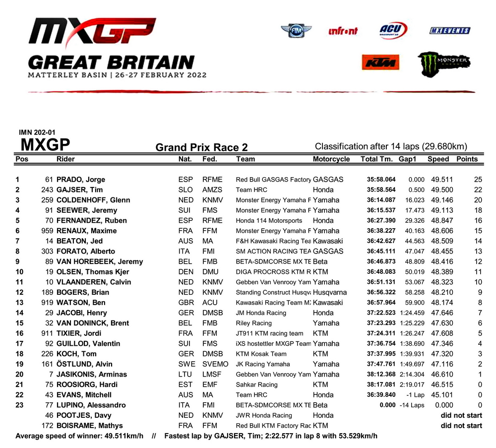 MXGP 世界越野錦標(biāo)賽 2022 賽季的揭幕戰(zhàn),二月 26 - 27 日在英國(guó)舉行。