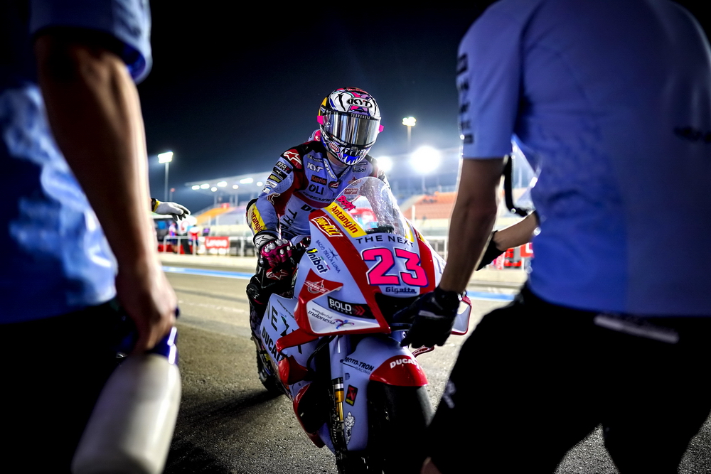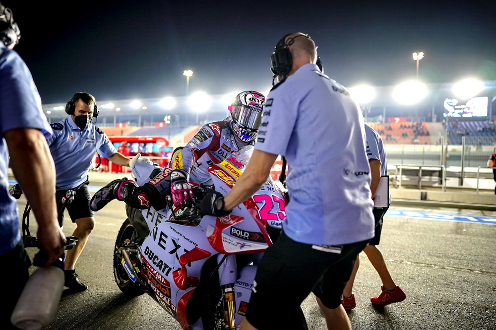 在昨天周五進行的 FP1,吉斯尼 MotoGP 車隊的兩位車手先是在 FP1 作了初步的熱身和調(diào)整賽車的設(shè)置,到夜間舉行 FP2 開始加速、不斷嘗試跑出更快的圈速。巴斯塔尼尼在兩節(jié)的練習(xí)里都跑了 14 圈,在 FP2 跑出了 1 分 54.013 秒、最大極速 354 km/h,綜合最佳圈速暫時排在了第 11 位。而在去年的時候,他在這條跑道上曾經(jīng)跑出了 1 分 53.733 秒的最佳圈速。