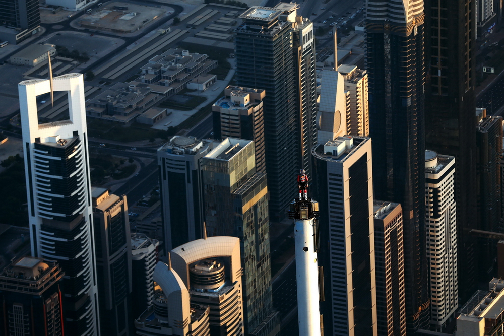 去年十月底的時(shí)候,來自英國的拉力賽車手桑德蘭(Sam Sunderland)抵達(dá)阿拉伯聯(lián)合酋長(zhǎng)國城市迪拜進(jìn)行賽前訓(xùn)練期間,在贊助商的支持下,進(jìn)行了一個(gè)名為 Yalla project、帶有宣傳當(dāng)?shù)芈糜翁厣囊曨l拍攝。這位 2017 年達(dá)喀爾拉力賽冠軍、并隨后的 2021 年比賽中也獲得勝利的車手,先后穿過了迪拜的沙漠沙丘、高爾夫球場(chǎng)和購物中心,而另一項(xiàng)壯舉是登上了當(dāng)?shù)氐臉?biāo)志性建筑、哈利法塔(Burj Khalifa Tower)的頂端。