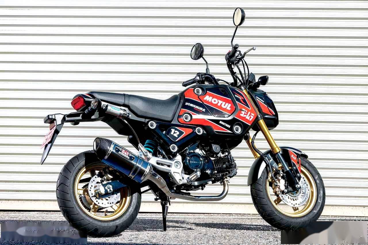 Legare Custom 所推出的這臺 Grom 2022 限量版,以北美版的 Grom 作為基礎(chǔ),標(biāo)志性的特點(diǎn),是采用了與 Honda 的超級跑車 CBR1000RR-R SP 相近的外觀圖案風(fēng)格。除了車體圖案之外,在配置上、還換裝了 Yoshimura 吉村美國分公司所生產(chǎn)的排氣系統(tǒng),金色的前后輪框(標(biāo)準(zhǔn)款的 Grom 日本本土版采用黑色的輪框)。此外,制作方還提供換裝了 Niton 可調(diào)后減震的版本供選購。