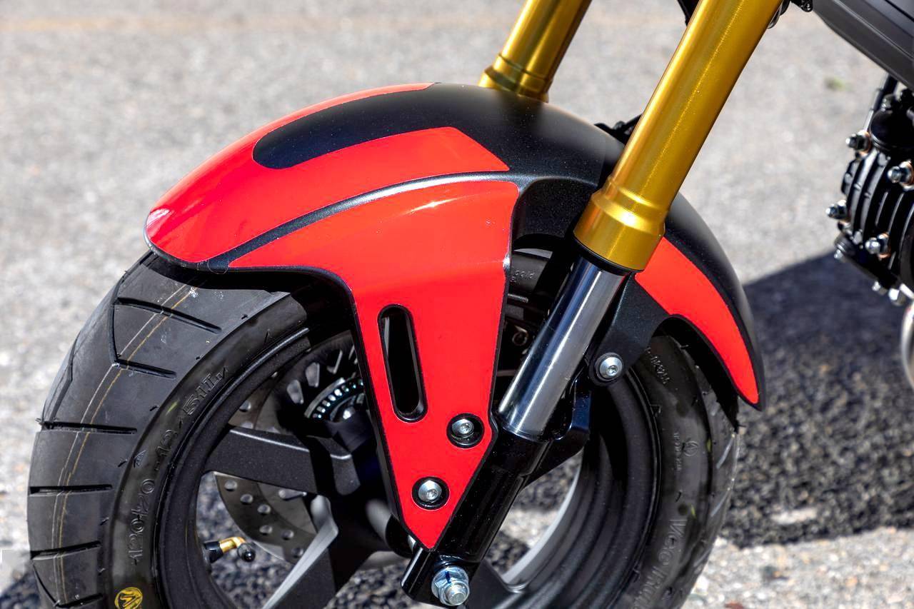 Grom 是 Honda 在全球多地銷售的迷你型產(chǎn)品,此前在東南亞市場的名稱是 MSX125。該車搭載一副風(fēng)冷四沖程臥式單氣缸、排氣量 123 cc 的發(fā)動機(jī),配備了倒立式的前叉、前后碟式制動系統(tǒng),直徑為 12 英寸的前后輪框。