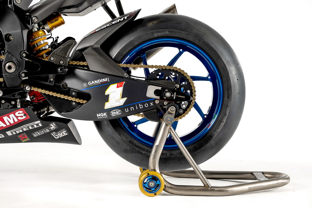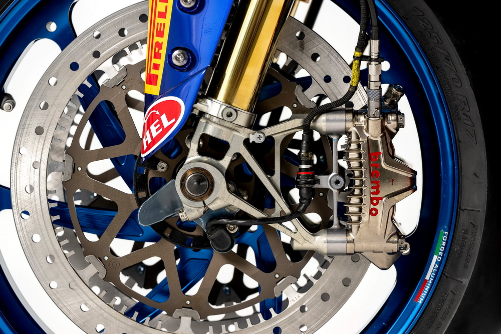 WSBK 規(guī)格的 YZF-R1 工廠賽車在量產(chǎn)車的基礎(chǔ)上改造而來,發(fā)動機(jī)的內(nèi)部、發(fā)動機(jī)管理/電子控制系統(tǒng)、懸掛系統(tǒng)、排氣系統(tǒng)和制動系統(tǒng)等,都經(jīng)過了修改,參閱官方公布的數(shù)據(jù),2022' YZF-R1 WorldSBK 規(guī)格的工廠賽車,最大動力輸出達(dá)到 220 匹以上,叉芯口徑 46 mm、行程為 130 mm 的 Ohlins 奧林斯倒立前叉(量產(chǎn)型 YZF-R1M 使用叉芯口徑 43 mm、行程 120 mm 的倒立前叉);特制的倒置加強肋(也就是所謂的 “ 倒三角 ”)賽車后搖臂,1450 mm、可作 15 mm 加長或縮短調(diào)整的軸距(YZF-R1M 的標(biāo)準(zhǔn)軸距為 1404.6 mm),全車干燥重量 164 公斤。