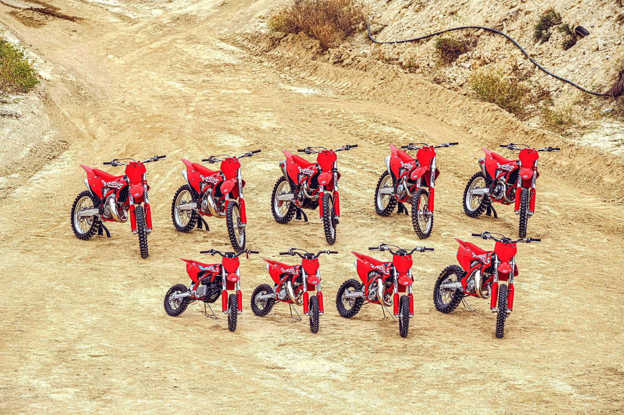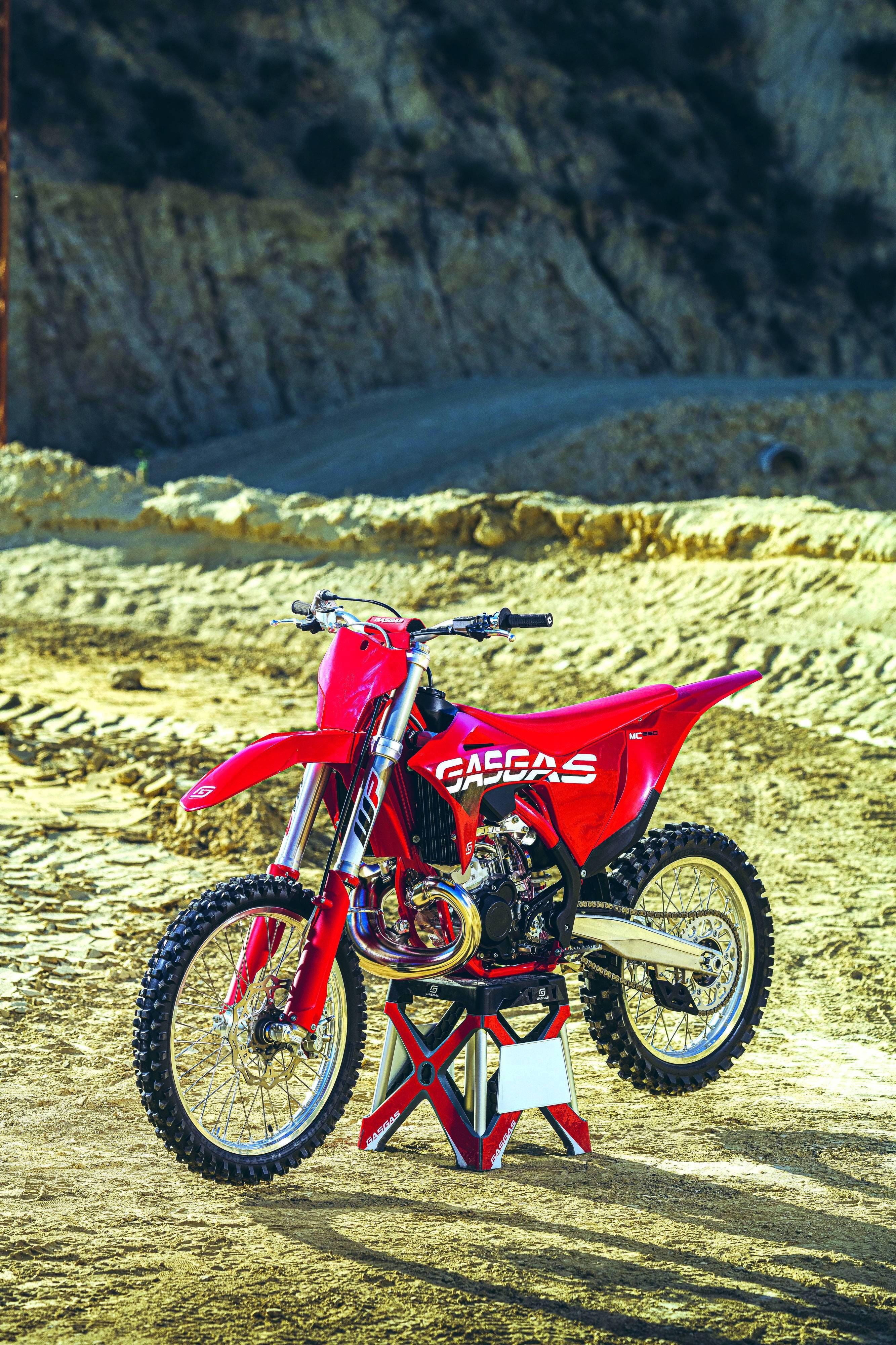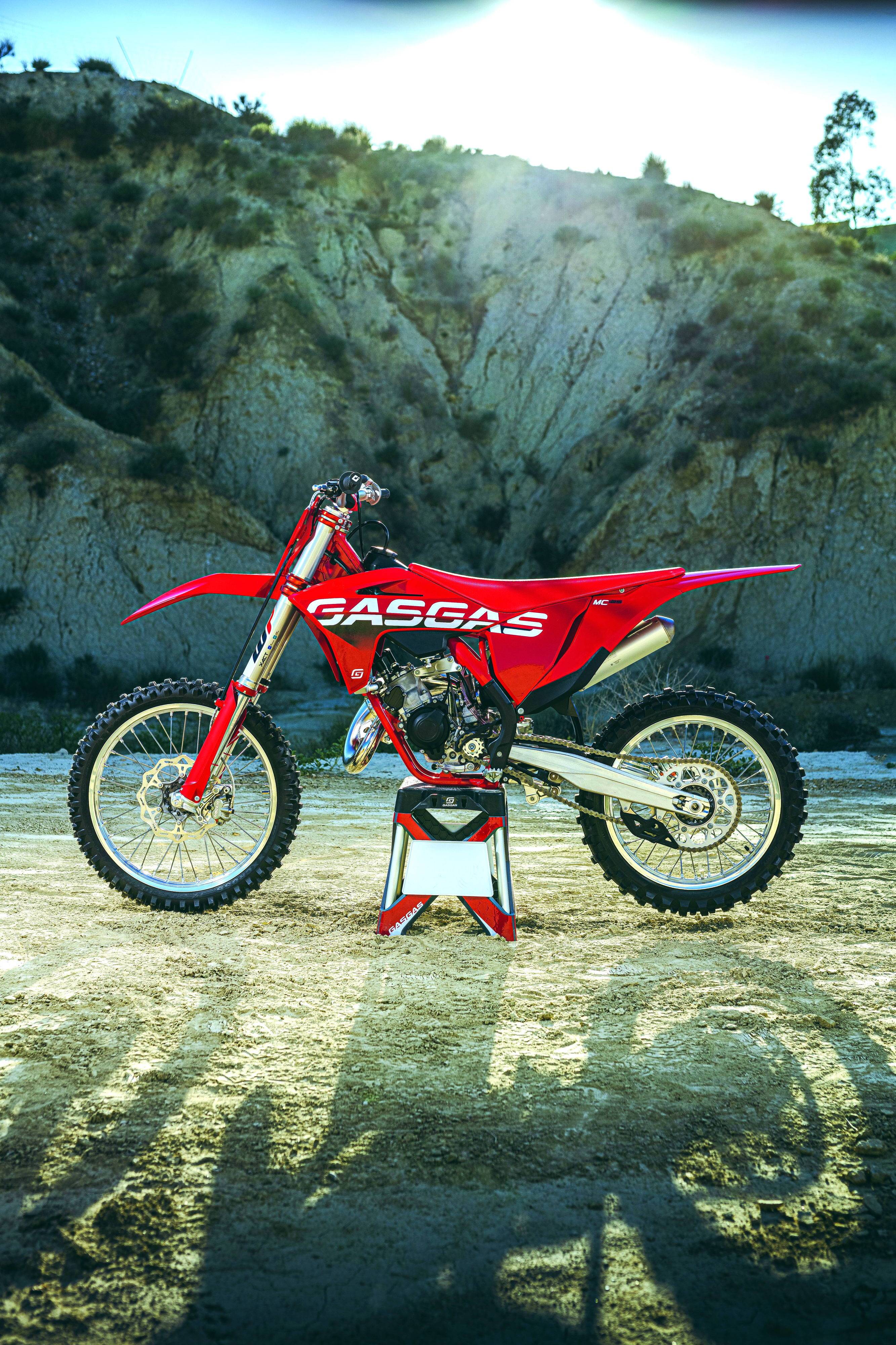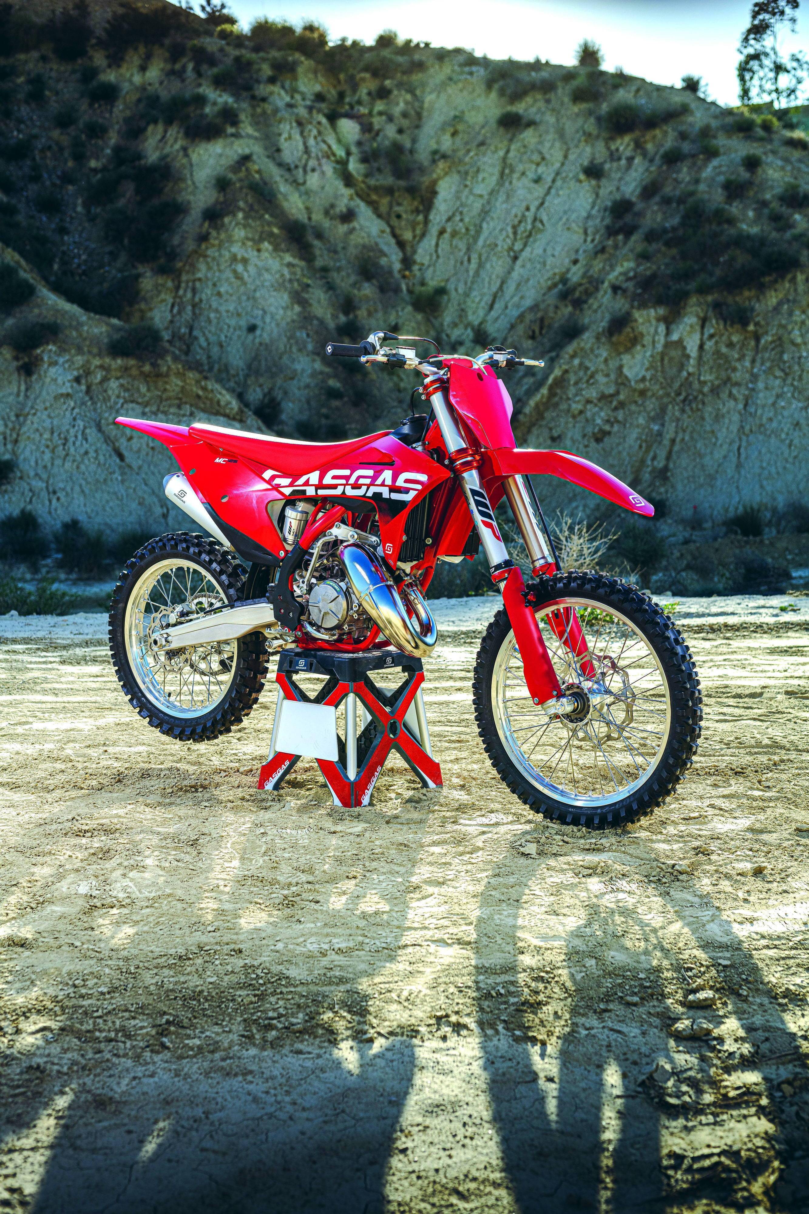GasGas 九個使用燃油發(fā)動機的 2023 款車型是:搭載四沖程發(fā)動機的 MC450F、MC350F、MC250F,搭載兩沖程發(fā)動機的 MC50、MC65、MC85(前 17、后 14 英寸的車輪)、MC85 大車輪版(前 19、后 16 英寸的車輪)、MC125、MC250。而電動越野車型是針對小童的 MC-E 5。