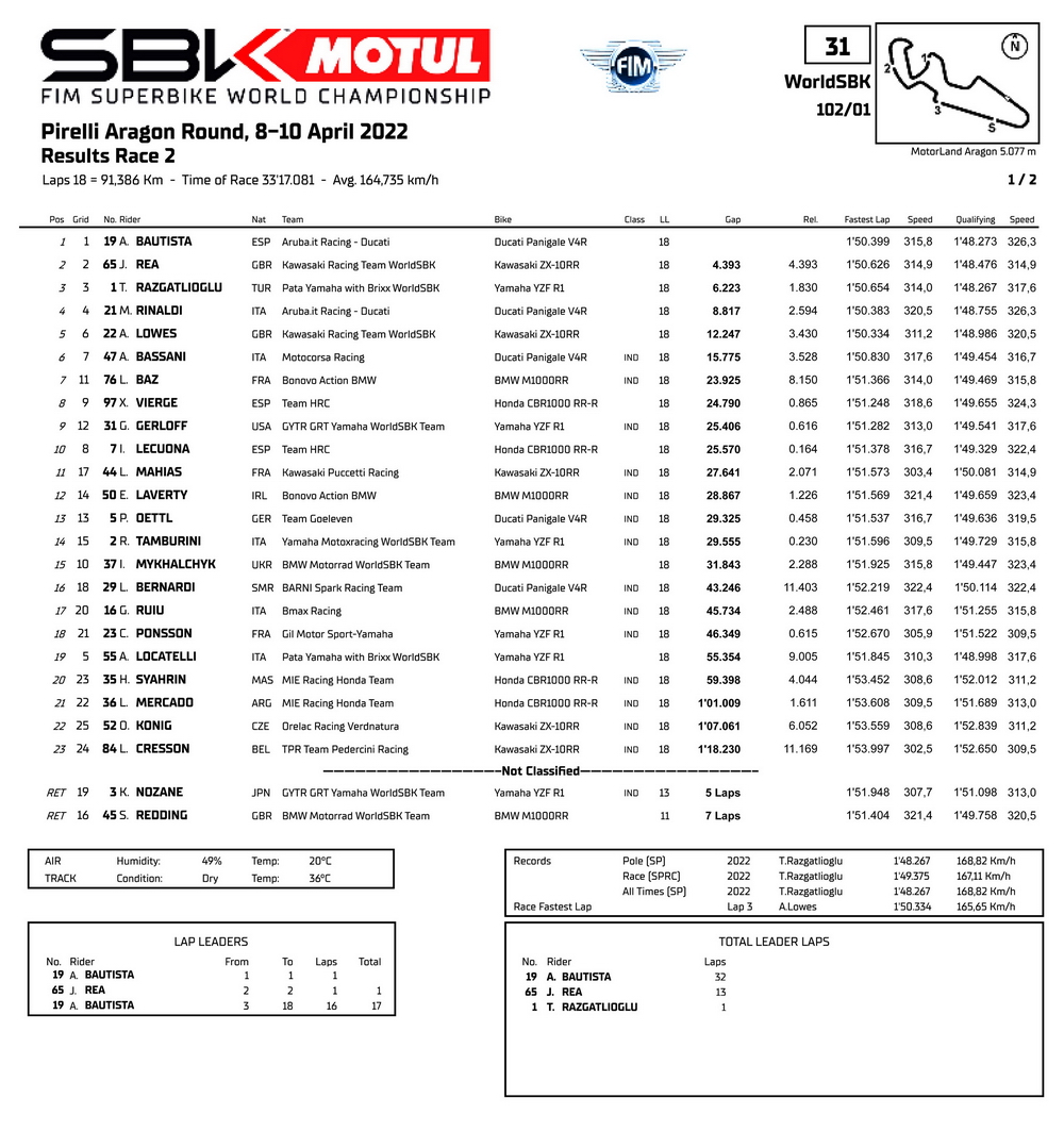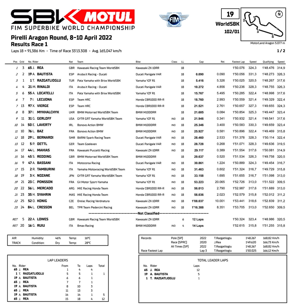 WSBK 2022:揭幕戰(zhàn)、西班牙阿拉貢站