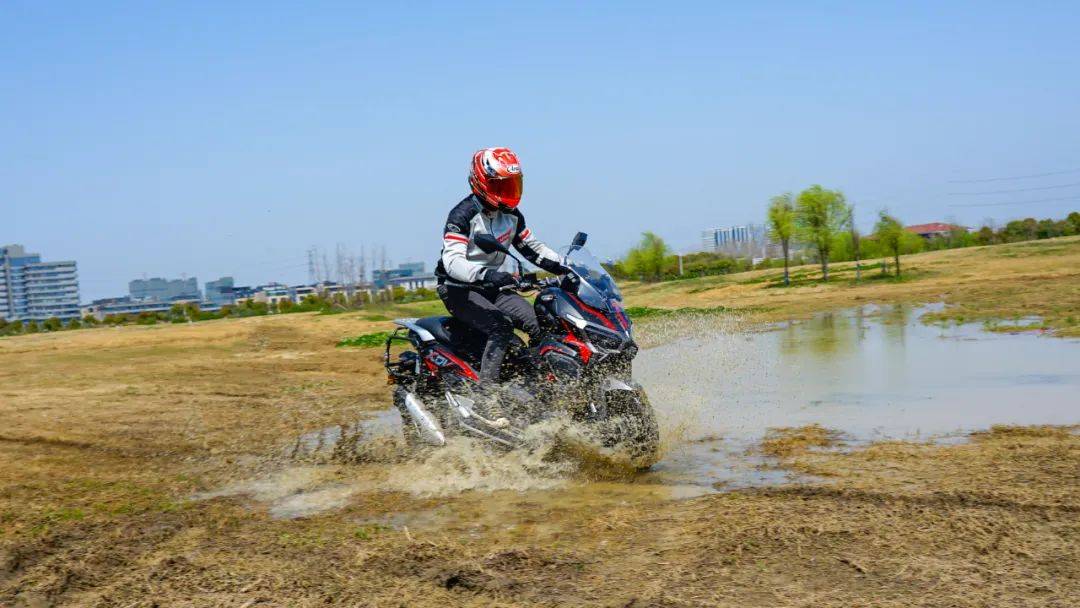 原廠(chǎng)的騰森全地形輪胎,在草土路和石子路上的抓地力都很不錯(cuò),關(guān)閉ABS也能小野一把。這也是目前唯一可關(guān)閉ABS系統(tǒng)的ADV踏板,龍嘉確實(shí)深得摩友心意。這套輪胎過(guò)涉水淺淤泥路面,也是完全沒(méi)有問(wèn)題,當(dāng)然只限淺淤泥,應(yīng)付摩旅路上的一般泥地完全足夠了。