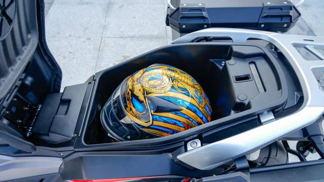 桶的深度完全足夠一頂全盔的容納,日常的儲(chǔ)物需求問(wèn)題不大, 同時(shí)廠(chǎng)家提供成威三箱的選配,需要長(zhǎng)途旅行時(shí),安裝一個(gè)尾箱,足夠大部分的置物需求。更讓人驚喜的是XDV原廠(chǎng)霧燈的設(shè)計(jì)孔位(送霧燈),帶有透鏡的燈源在夜晚照明效果良好,夜間行車(chē)信心更足。