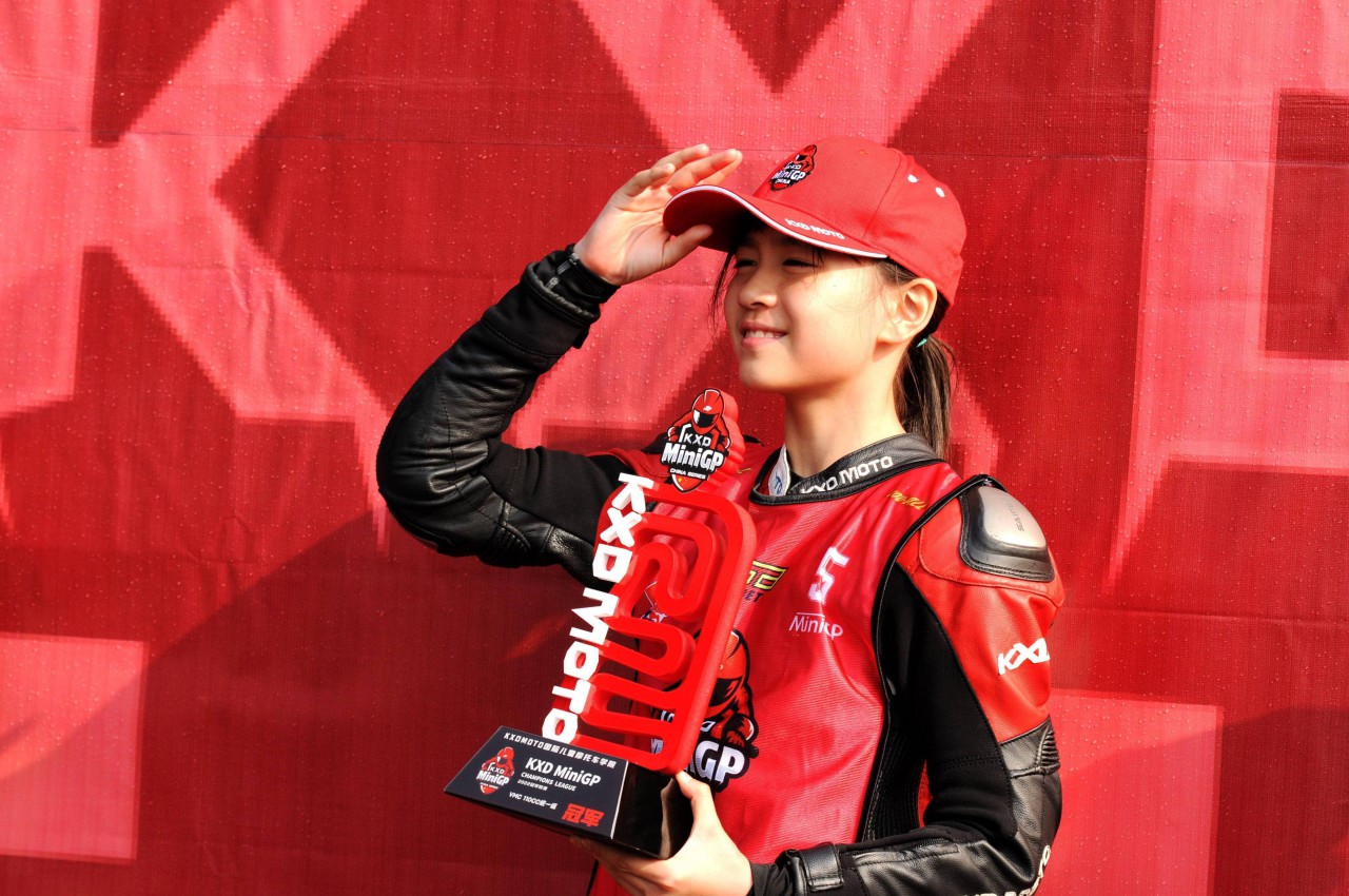 下面的圖片,奪得了 KXD MiniGP 2022 冠軍聯(lián)賽清遠站、VMC 110 cc 統(tǒng)一組冠軍的陳詩瑜(資料圖片)。