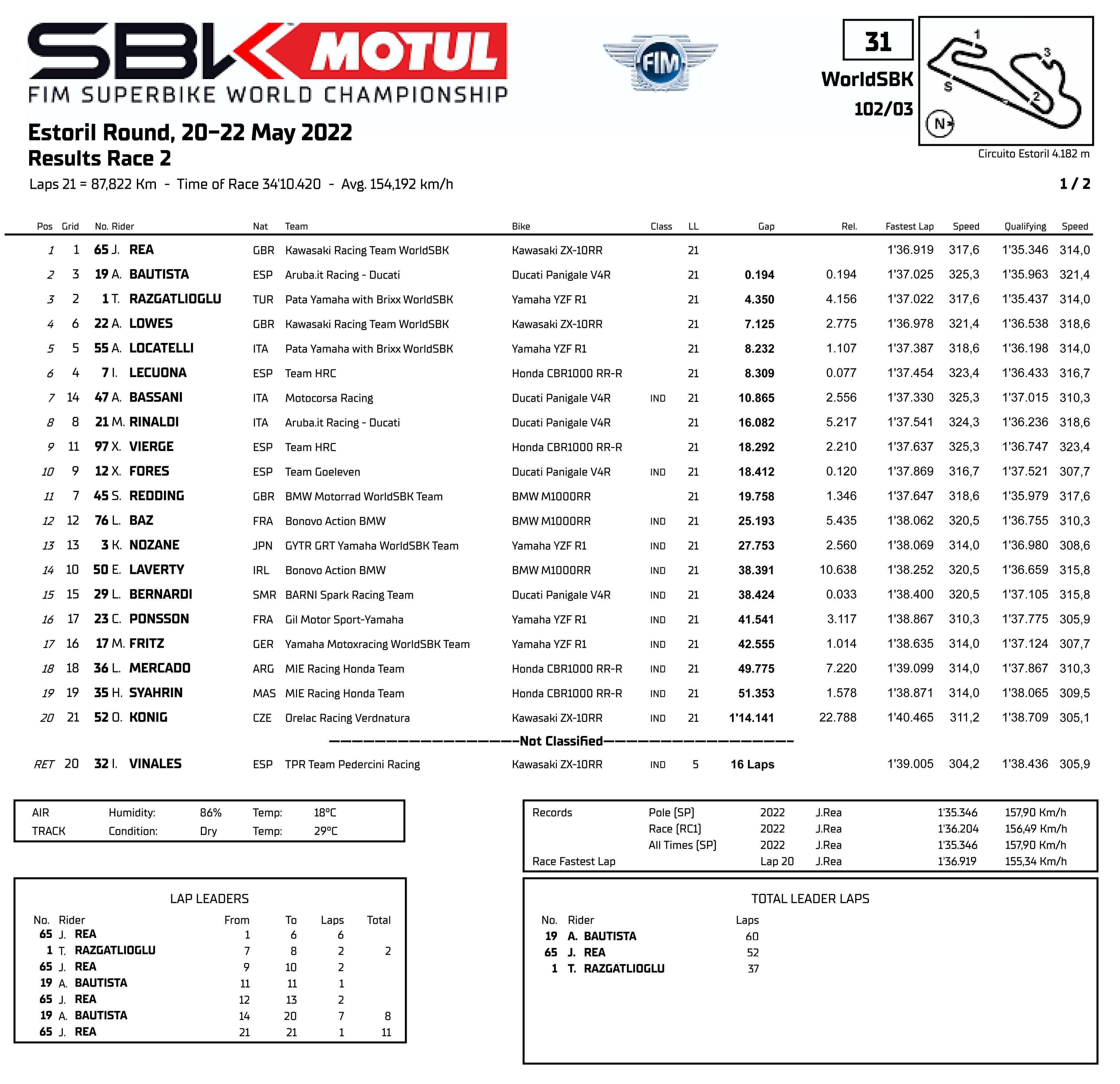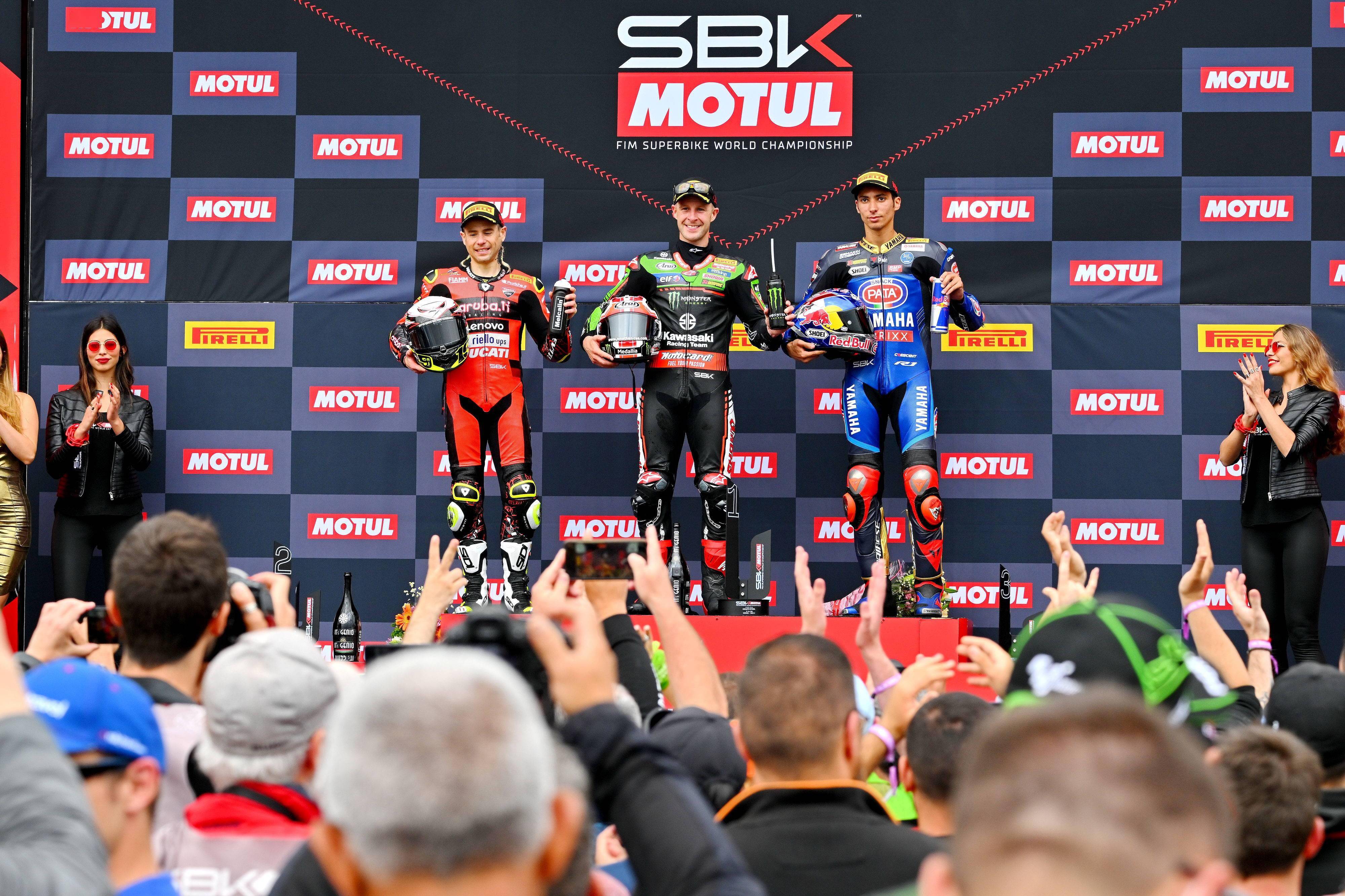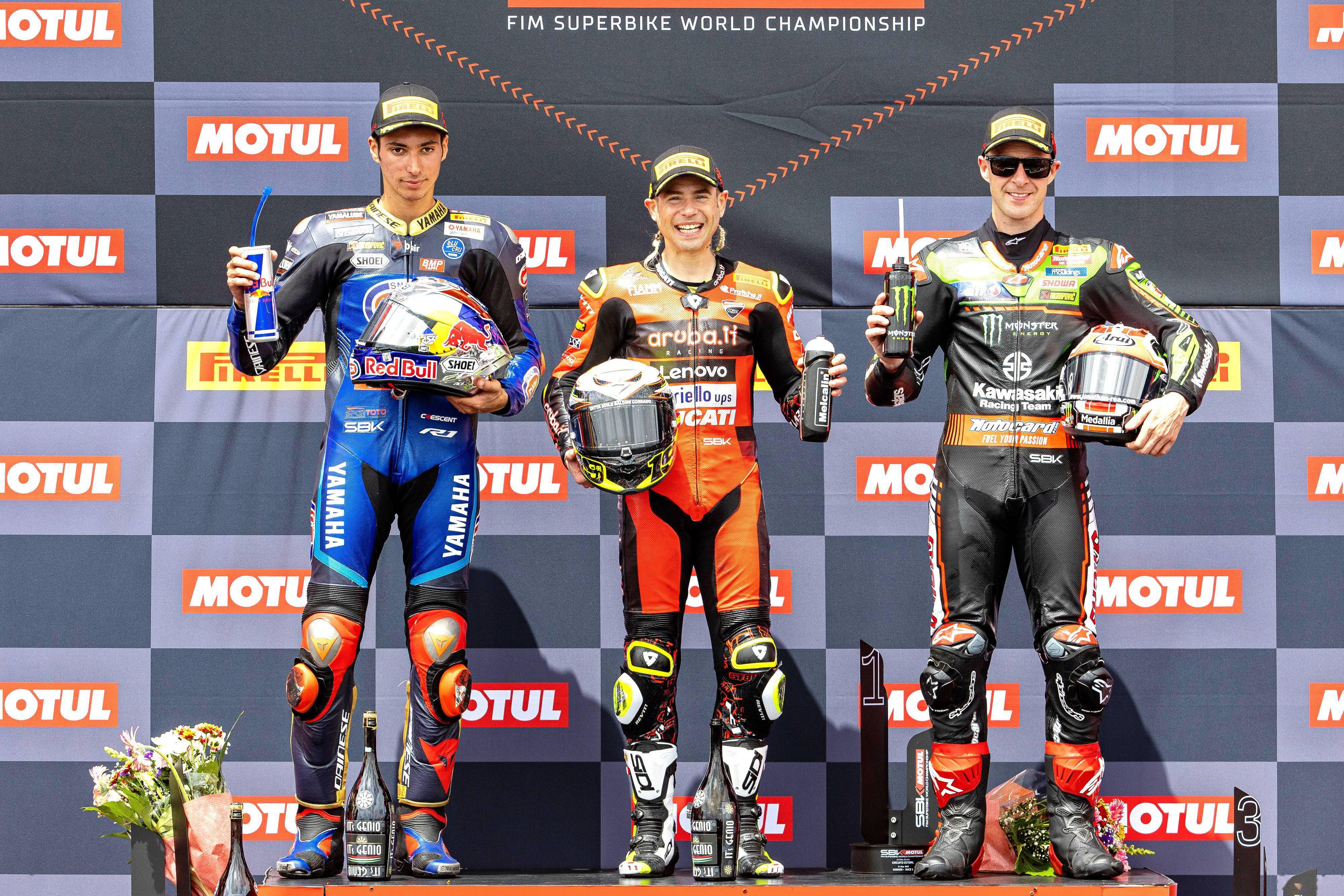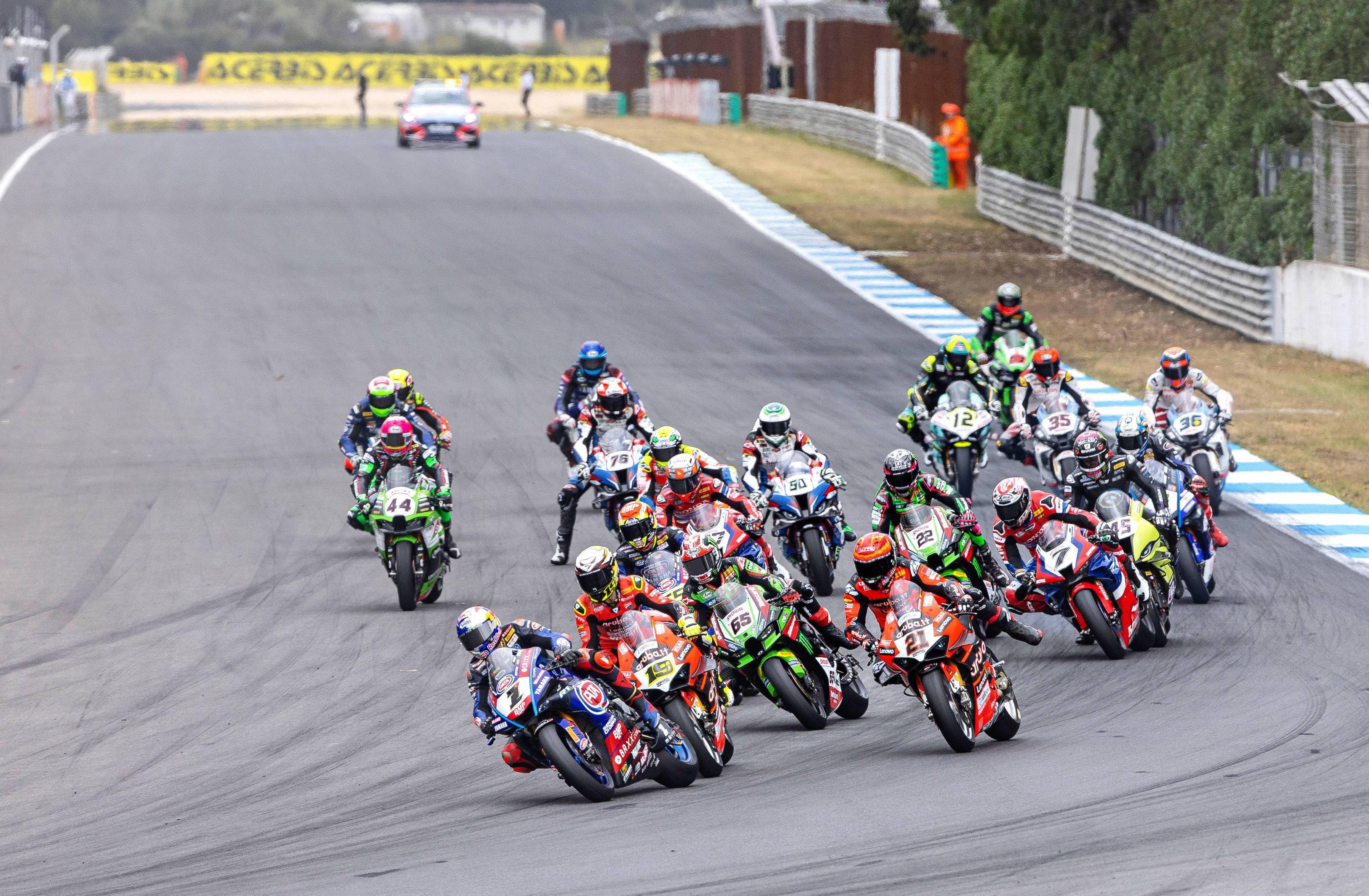 WSB/WSBK 級別,賽前的 Super Pole 超級排位賽,都配備了 Pirelli 倍耐力最新 SC Q 超軟配方輪胎的車手們,已經(jīng)做好了沖擊圈速記錄的準備。最終有兩位車手跑出了破記錄的圈速:65 號車的雷亞(Jonathan Rea)跑出了 1 分 35.346 秒,比舊記錄快了超過 0.5 秒,奪得了第一節(jié)比賽的排頭位出賽;1 號車的應屆世界冠軍、土耳其車手拉格里奧盧(Toprak Razgatlioglu)排在第二,他跑出了 1 分 35.437 秒,比頭車僅僅慢了 0.091 秒。他們兩人在本賽季的 “ 老對手 ” 捌弟(Alvaro Bautista,巴迪斯塔),排在了發(fā)車位置的第三。