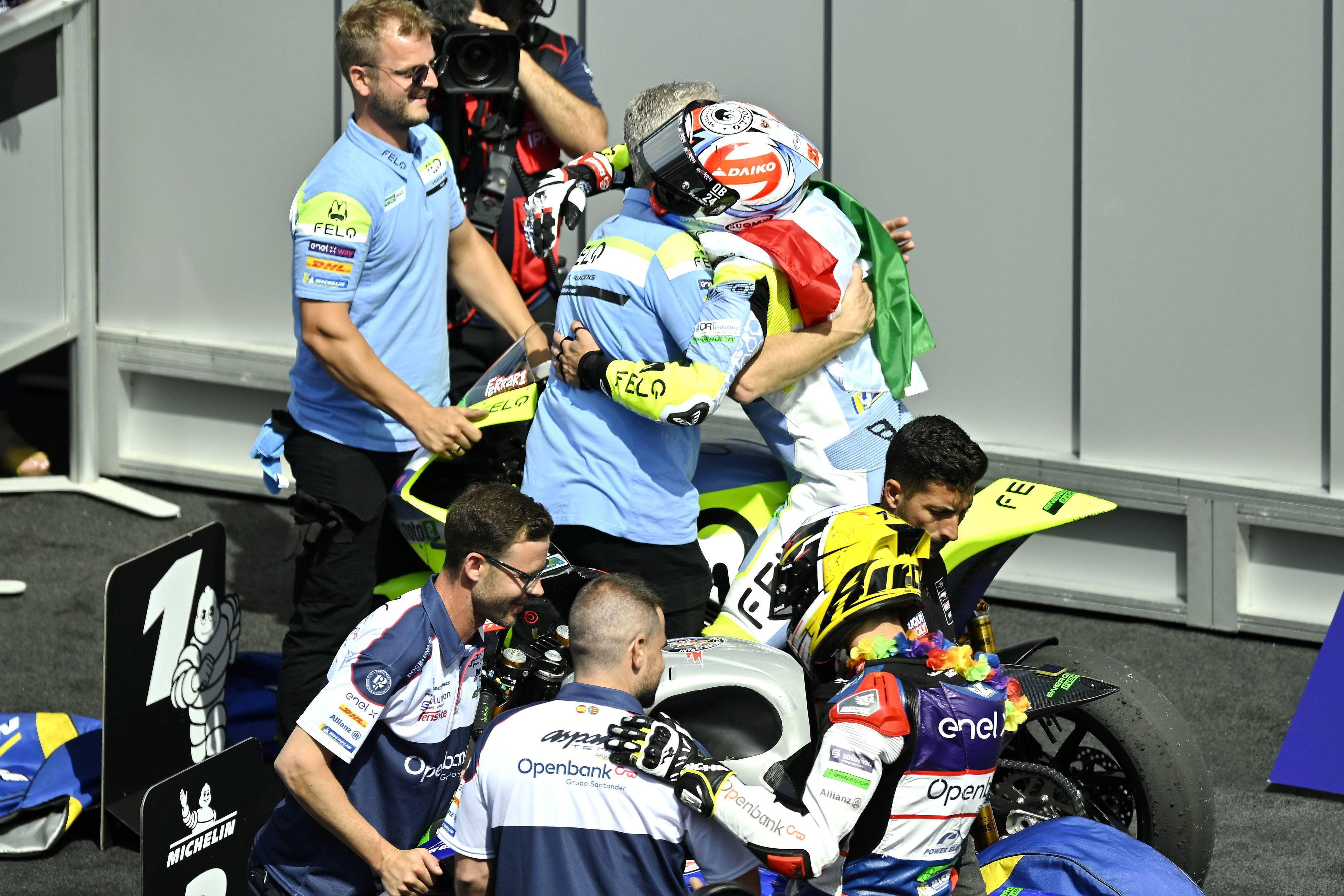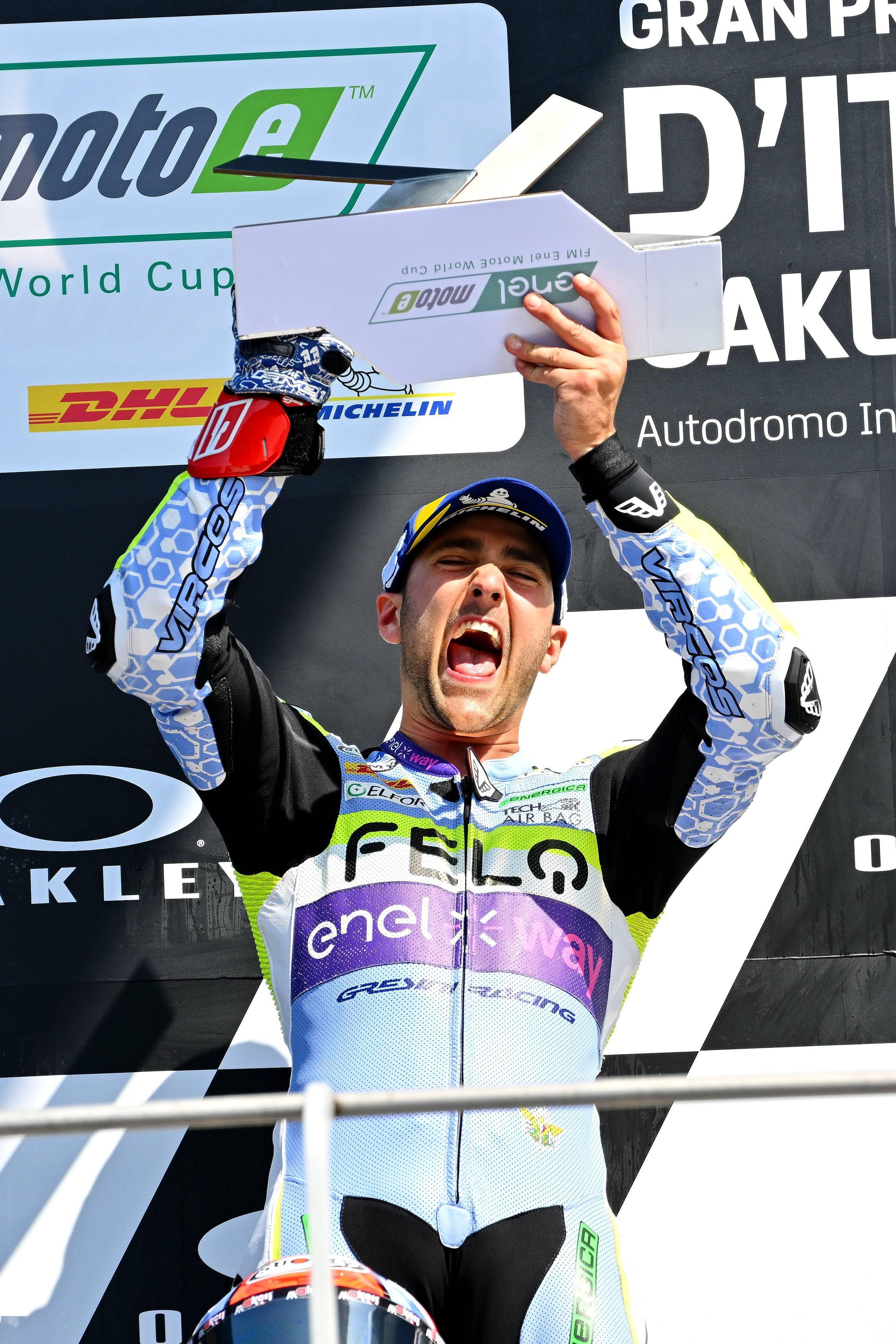 FELO 電斐科技攜手吉斯尼車隊(FELO Gresini Racing)、今年開始進軍 MotoE 世界杯。車隊的主將、11 號車的法拉利(Matteo Ferrari),在上一站意大利的比賽首次打開了新賽季的勝利之門,兩節(jié)比賽獲得一冠一亞,同時也為中國品牌拿到了首座 MotoE 世界杯的冠軍獎杯。