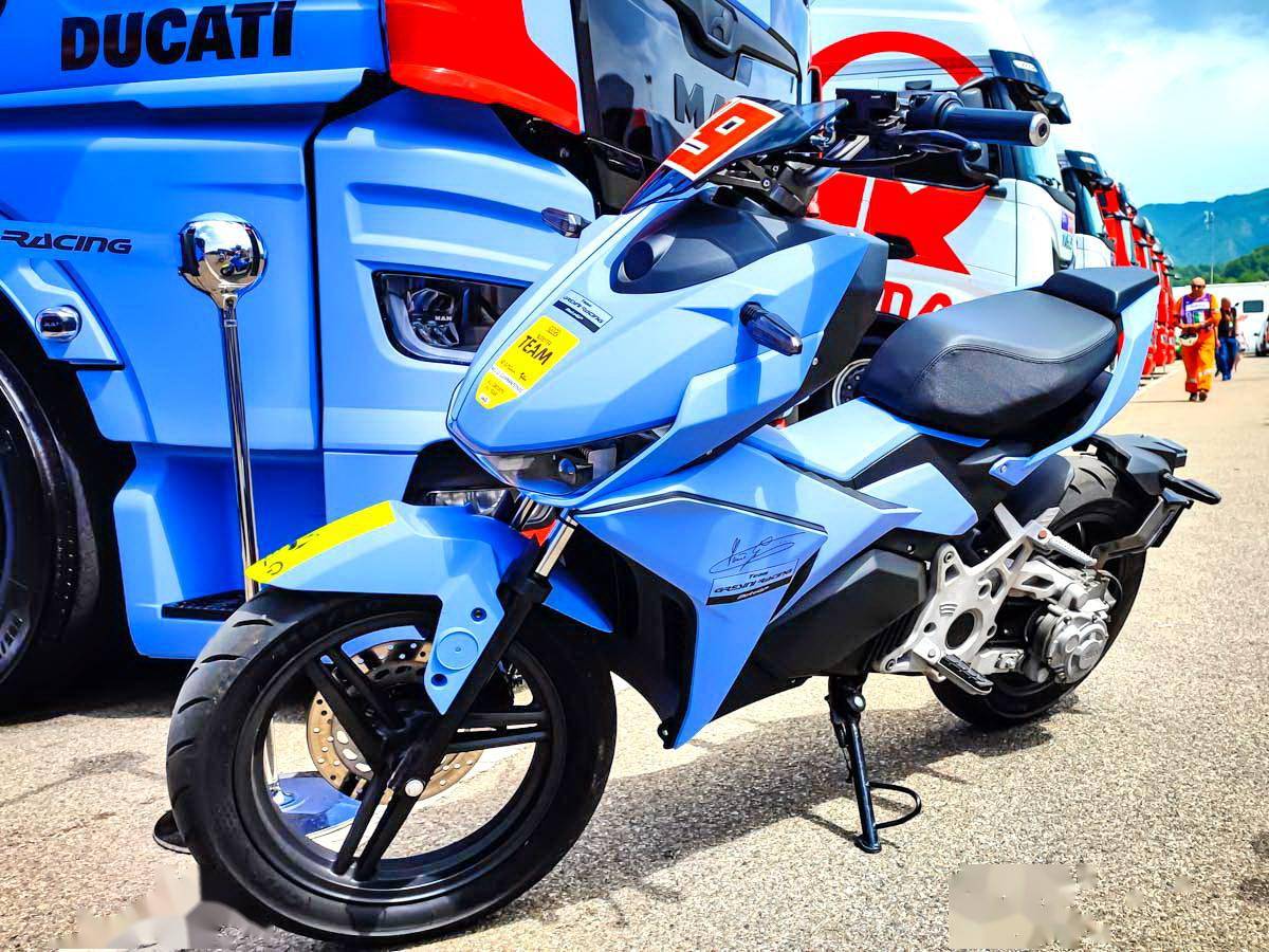 下面的圖片,成為吉斯尼 MotoGP 車隊后場專用車、FELO 電斐科技的 FW-06 電動車(資料圖片)。