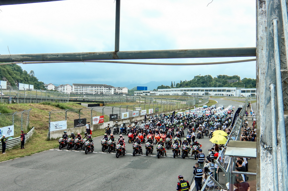 本組別的比賽是 “ 激情貴州汽摩系列賽 ” 的重要組成部分,在周日(六月 19 日)的第二節(jié)比賽(第二回合決賽)開始前,賽會在起跑點上舉行了盛大的開幕儀式,由大隊車友組成的巡游方陣進入跑道內(nèi),一起分享機器的轟鳴、感受跑道內(nèi)的氣氛,已漸漸成為了近年來駿馳賽道的 “ 傳統(tǒng) ” —— 這是我們在歷年所見過的、全國各地的比賽中,持續(xù)與兩輪愛好者走得最近的比賽,讓賽事變成了車友們一個盛大的節(jié)日。