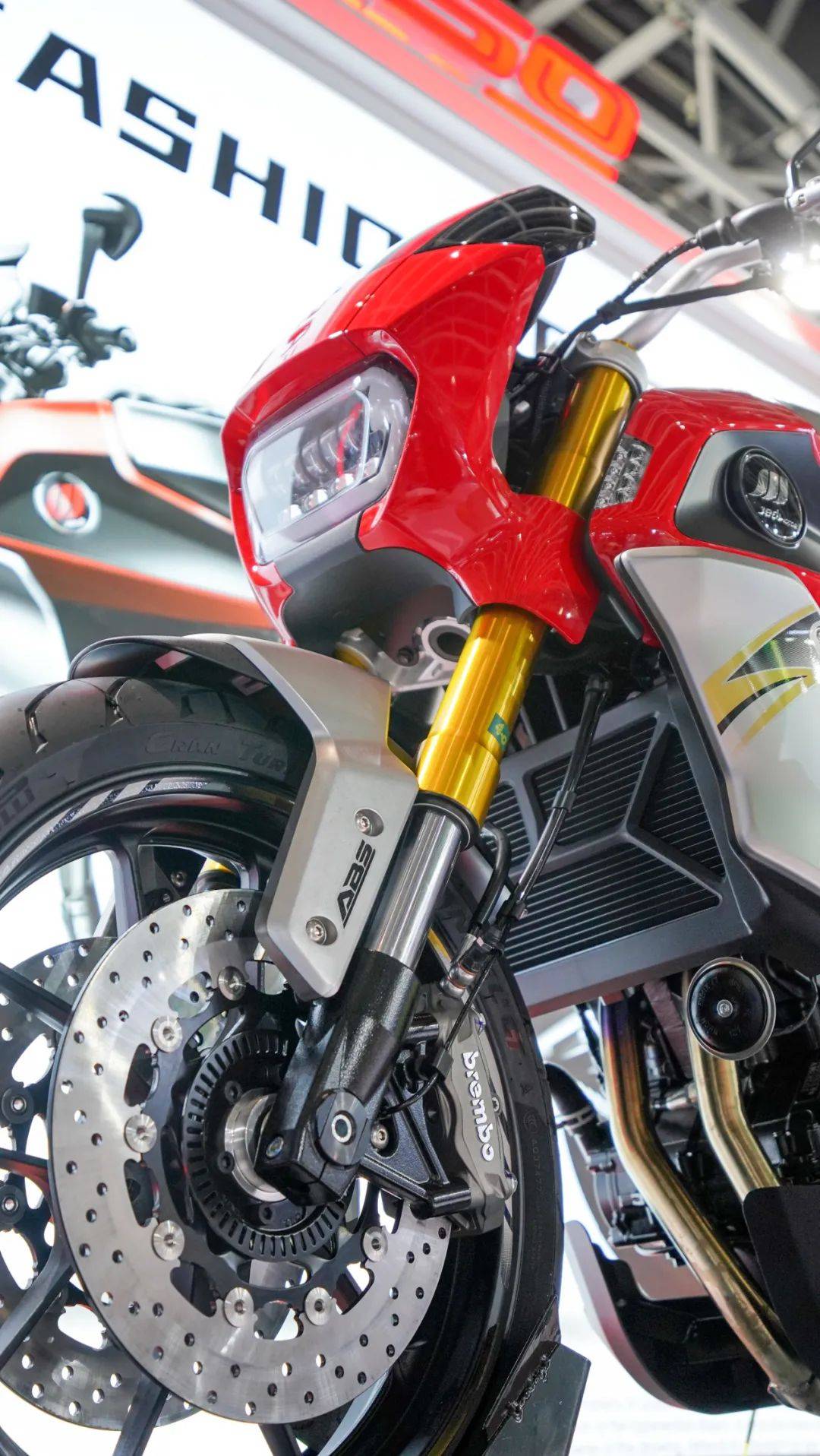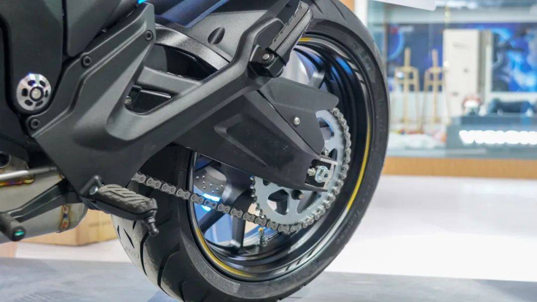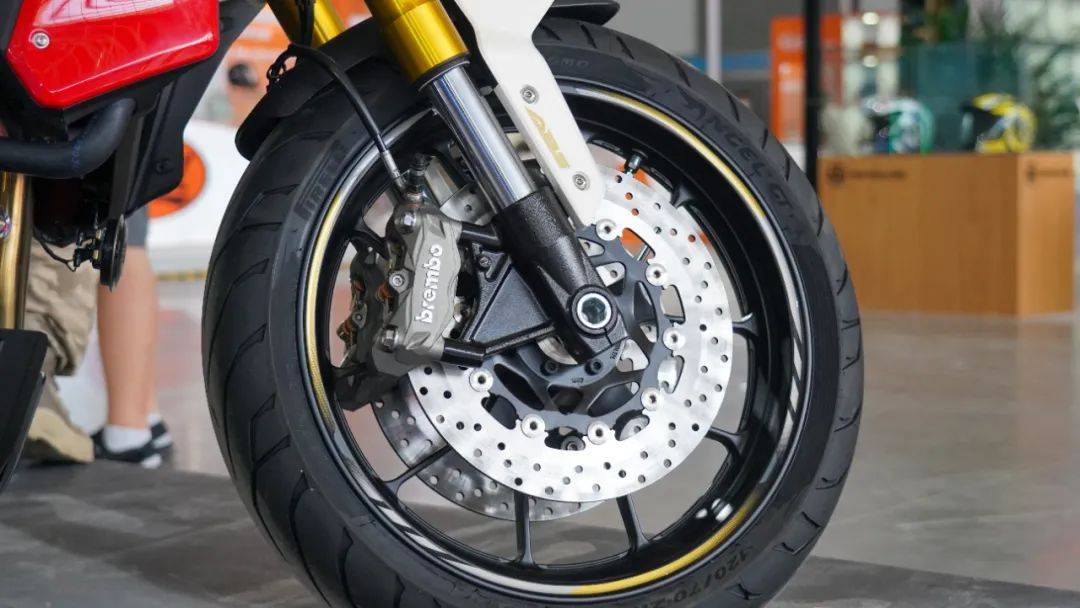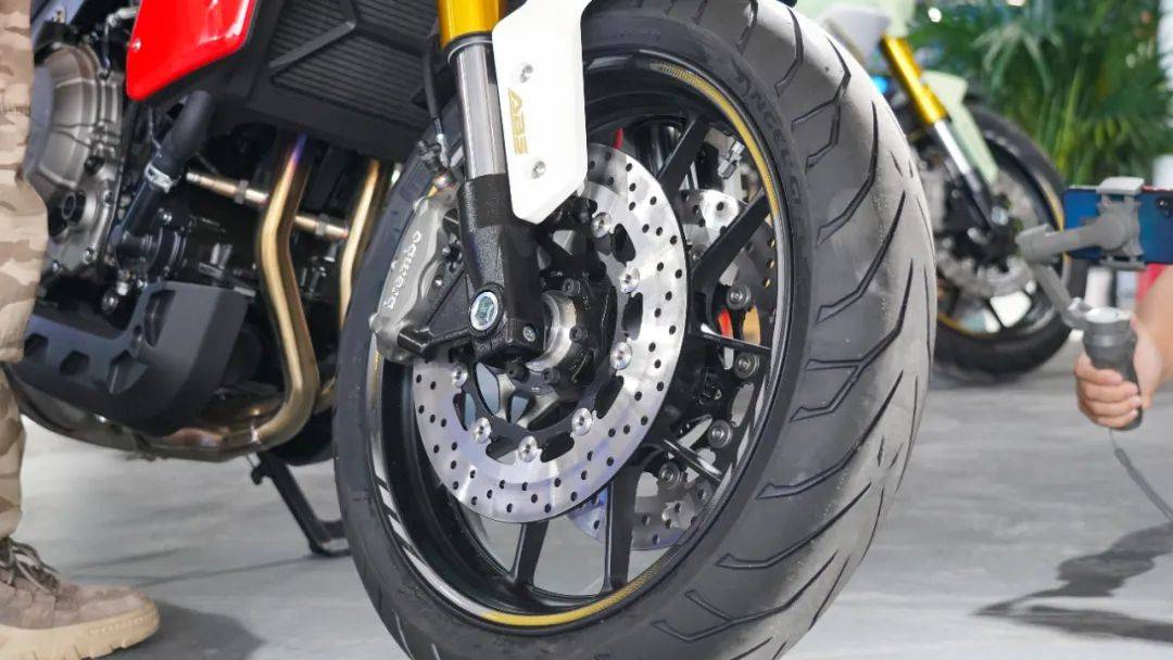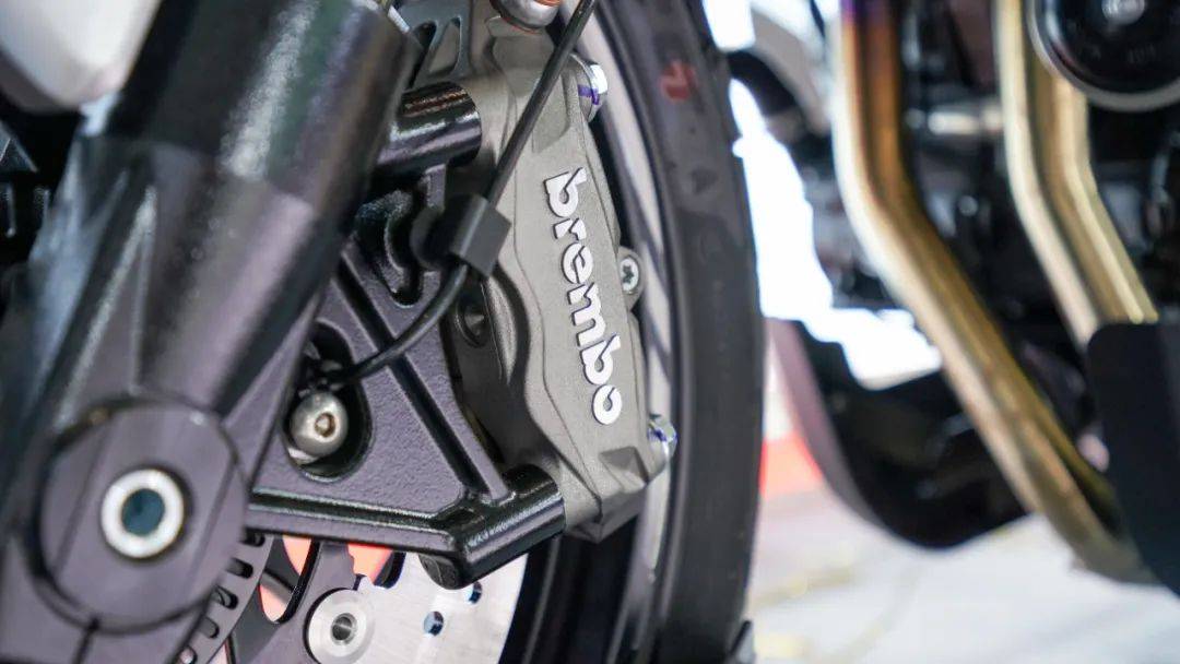 其次是懸掛系統(tǒng),同樣堪稱業(yè)界頂級,前KYB全可調(diào)倒置減震搭配后KYB外置氣囊減震,無論是運動還是舒適這套減震都能有一個合適的狀態(tài)。當(dāng)然還有制動系統(tǒng),F(xiàn)R750直接給我們帶來了Brembo全家桶,前對向四活塞卡鉗配雙浮動剎車盤,采用多段可調(diào)Brembo直推上泵,后輪采用對向雙活塞卡鉗配合Brembo一字泵,更是標(biāo)配了博世雙通道ABS系統(tǒng),強大的剎車效能保障行車安全。前120-70-17,后180-55-17的倍耐力天使GT輪胎,寬胎帶來的視覺沖擊力無需多言,其次在實用層面也能給車輛帶來更好的行駛穩(wěn)定性。