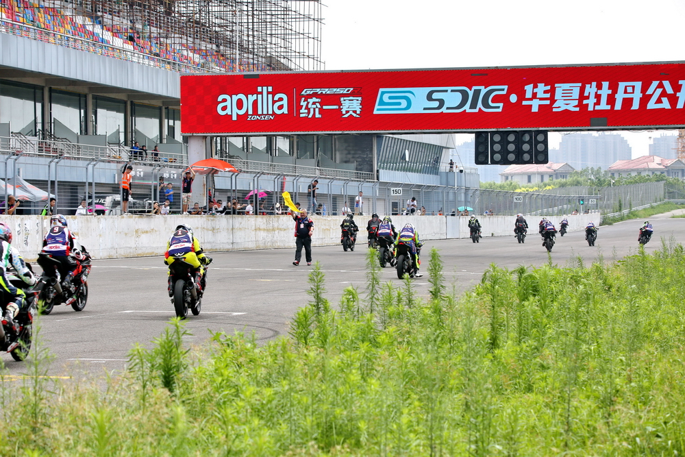 aprilia GPR250R 統(tǒng)一賽 2022 年度第二站的比賽,七月 15 - 17 日在山東菏澤國(guó)際賽車(chē)場(chǎng)舉行。本組別的比賽,是該賽道的標(biāo)志性賽事 —— 華夏牡丹系列賽里的焦點(diǎn)競(jìng)技項(xiàng)目之一。