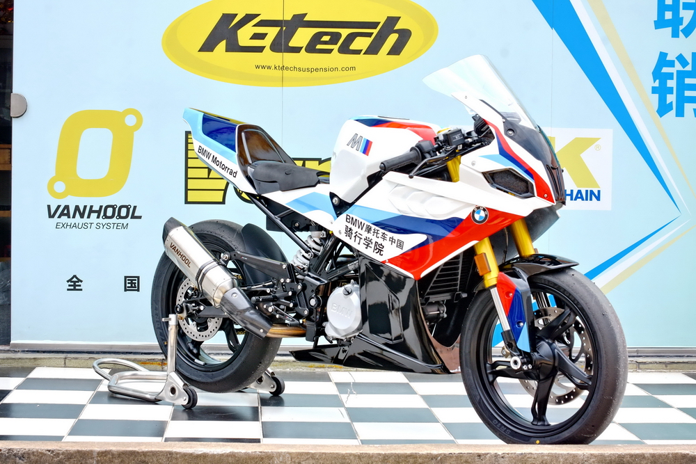 下圖:以 G 310 R 為基礎(chǔ)改裝而成的、BMW 寶馬摩托騎行學(xué)院的賽道用車(資料圖片)。