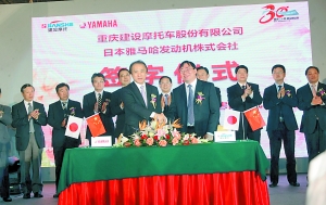 核心提示:重慶建設與日本雅馬哈合作30周年慶典昨舉行。昨日,建設摩托與日本雅馬哈舉行了合作30周年慶典,并簽署了新的深入合作協(xié)議,今后