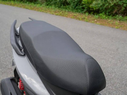 正因?yàn)椴捎昧饲爸糜拖涞脑O(shè)計,所以新彎道150的儲物空間表現(xiàn)是相當(dāng)不錯的,雖然座桶受深度限制容納不了全盔,但因?yàn)殚L度足夠,所以比常規(guī)后置油箱的踏板有著更強(qiáng)的儲物能力。新彎道采用了一種彈簧式的座墊鉸鏈,所以在擰動坐桶鎖時座墊可自動彈起,同時因?yàn)闆]有液壓桿的限制,所以座墊開啟角度很大,拿取物品方便。