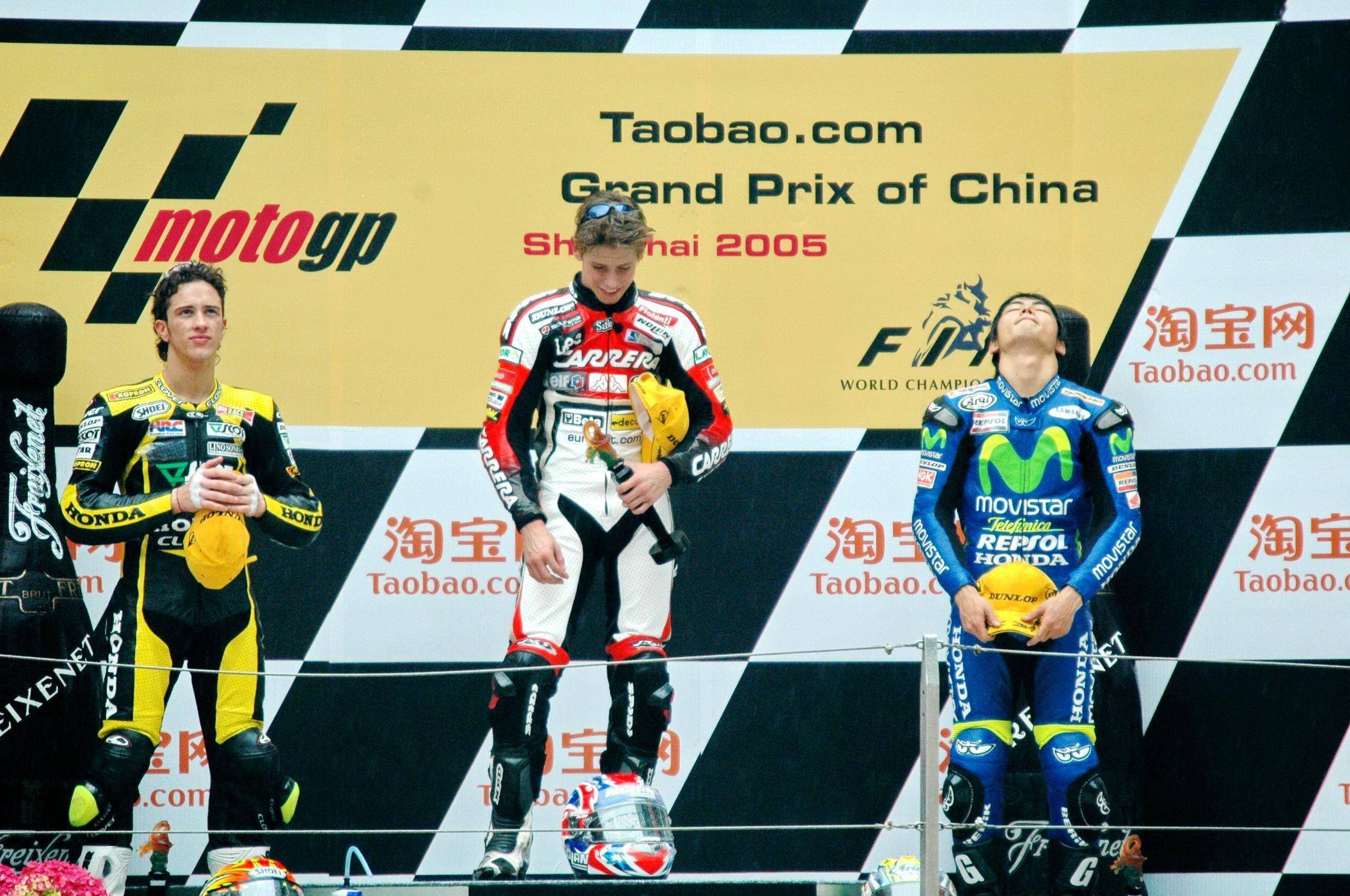 下圖:2005 年 MotoGP 上海站,參加 WGP250 級別比賽的杜維斯奧索(資料圖片)。當(dāng)時他奪得了這一站比賽的亞軍,并創(chuàng)下上海賽道 WGP250 級別比賽中的最快圈速記錄。