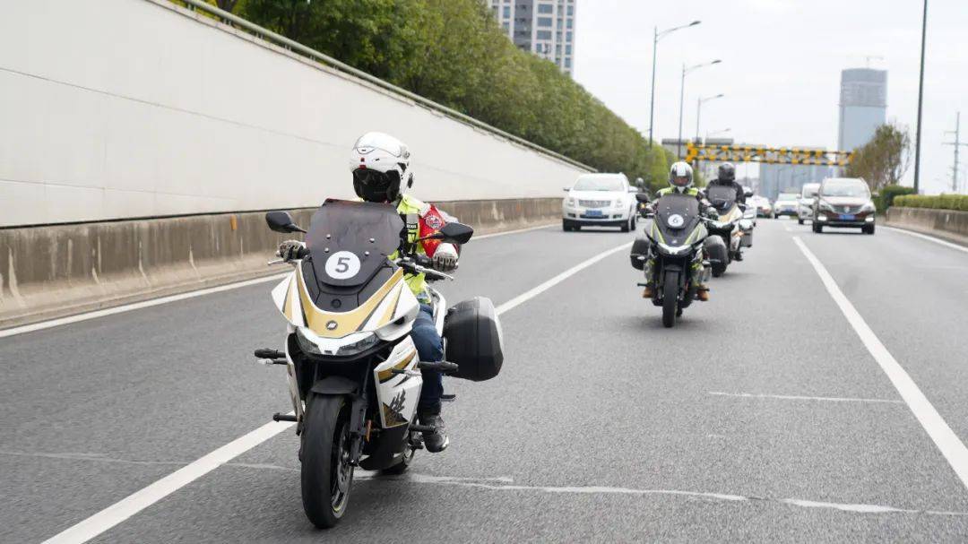最后,發(fā)車(chē)儀式正式開(kāi)始,8輛杰迪傑750,由4名蘇州摩友(固定)、4名南京資深摩友(每到一站換四位當(dāng)?shù)啬τ眩┓謩e駕駛,緩緩駛?cè)氲缆?,開(kāi)始了今天南京到揚(yáng)州的“安全駕駛、文明騎行”之旅。