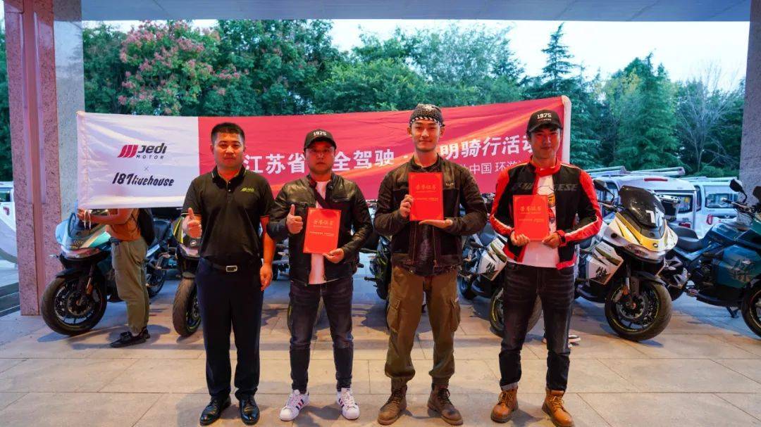 杰迪大區(qū)經(jīng)理孫海東先生為參與此次文明騎行活動的四位宿遷車友頒發(fā)榮譽證書。