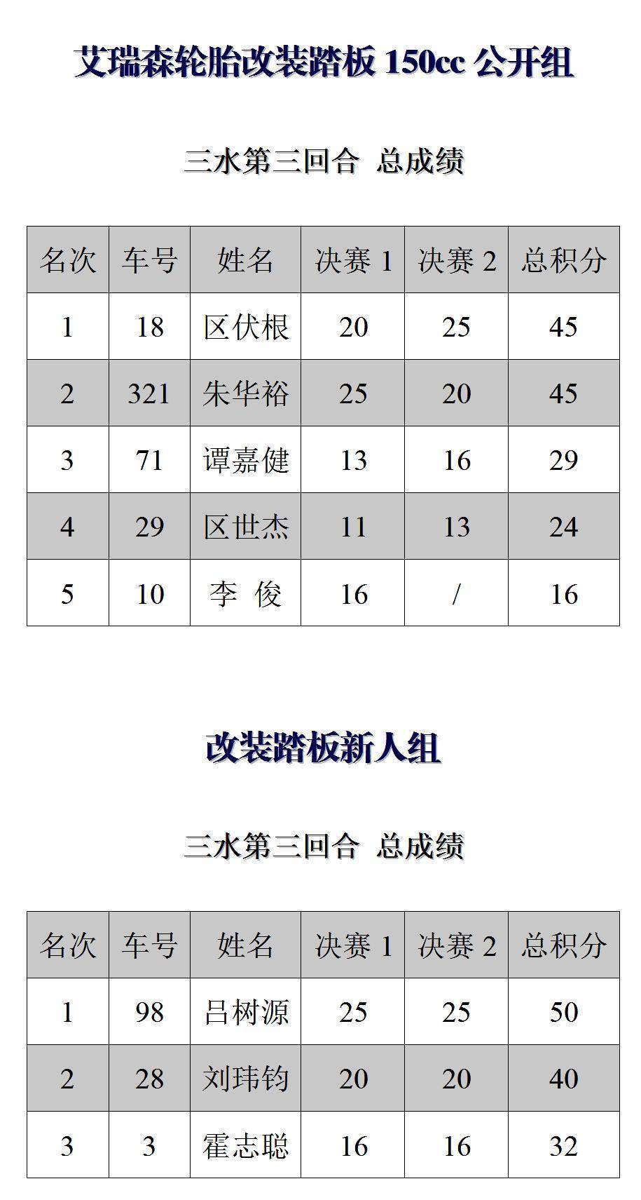 下面的圖片,2022 偉業(yè)達(dá) GP、 三水森林賽車(chē)會(huì)摩托車(chē)大賽 偉業(yè)達(dá)杯 第三回合,各競(jìng)賽組別的成績(jī)。