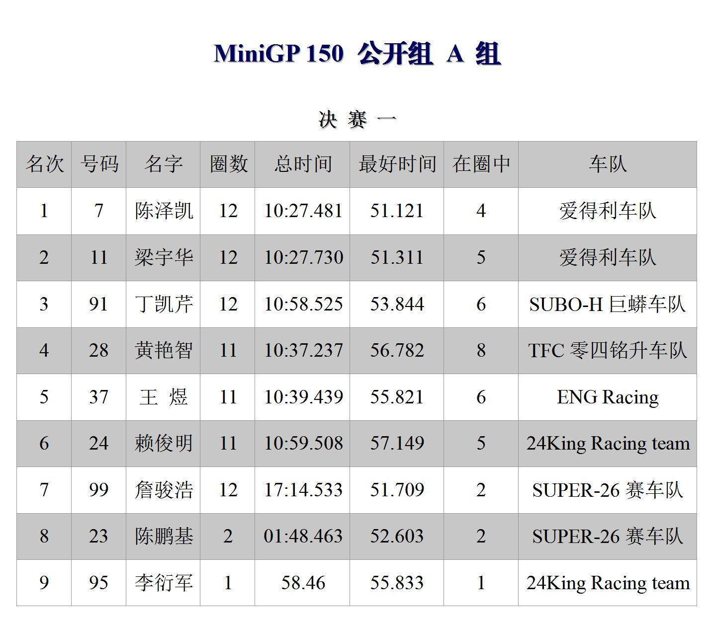 1、MiniGP 150 A 組:50.439 秒(2019,蘇國(guó)威);