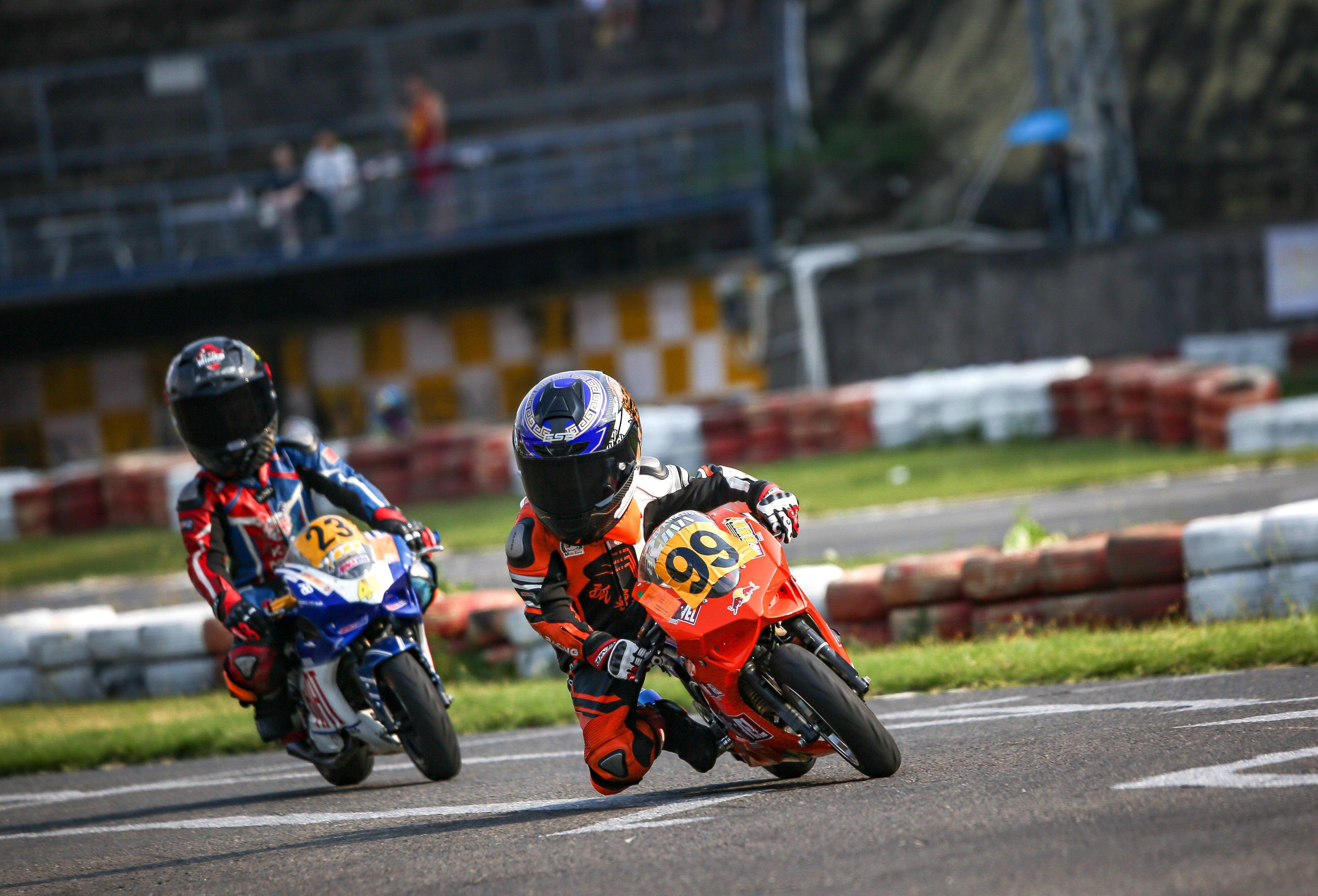 小童賽道體驗(yàn) B 組,有十一位來(lái)自全國(guó)各地的小車手參加。這一競(jìng)賽組別是兩輪賽車領(lǐng)域里面、真正的 “ 燒錢 ” 游戲:小車手入門(mén)沒(méi)多久,只要訓(xùn)練有一段的日子,車子很快就被他們/她們嫌馬力不足,若要更進(jìn)一步,家長(zhǎng)們就得開(kāi)始考慮要換車,這淘汰的速度很可能僅僅就是一年左右;小車手的身體變化也快,剛買沒(méi)多久的新皮衣、新靴子,估計(jì)沒(méi)幾個(gè)月就開(kāi)始變得局促起來(lái),又得準(zhǔn)備考慮買新尺碼的防護(hù)裝備 ... ... ...