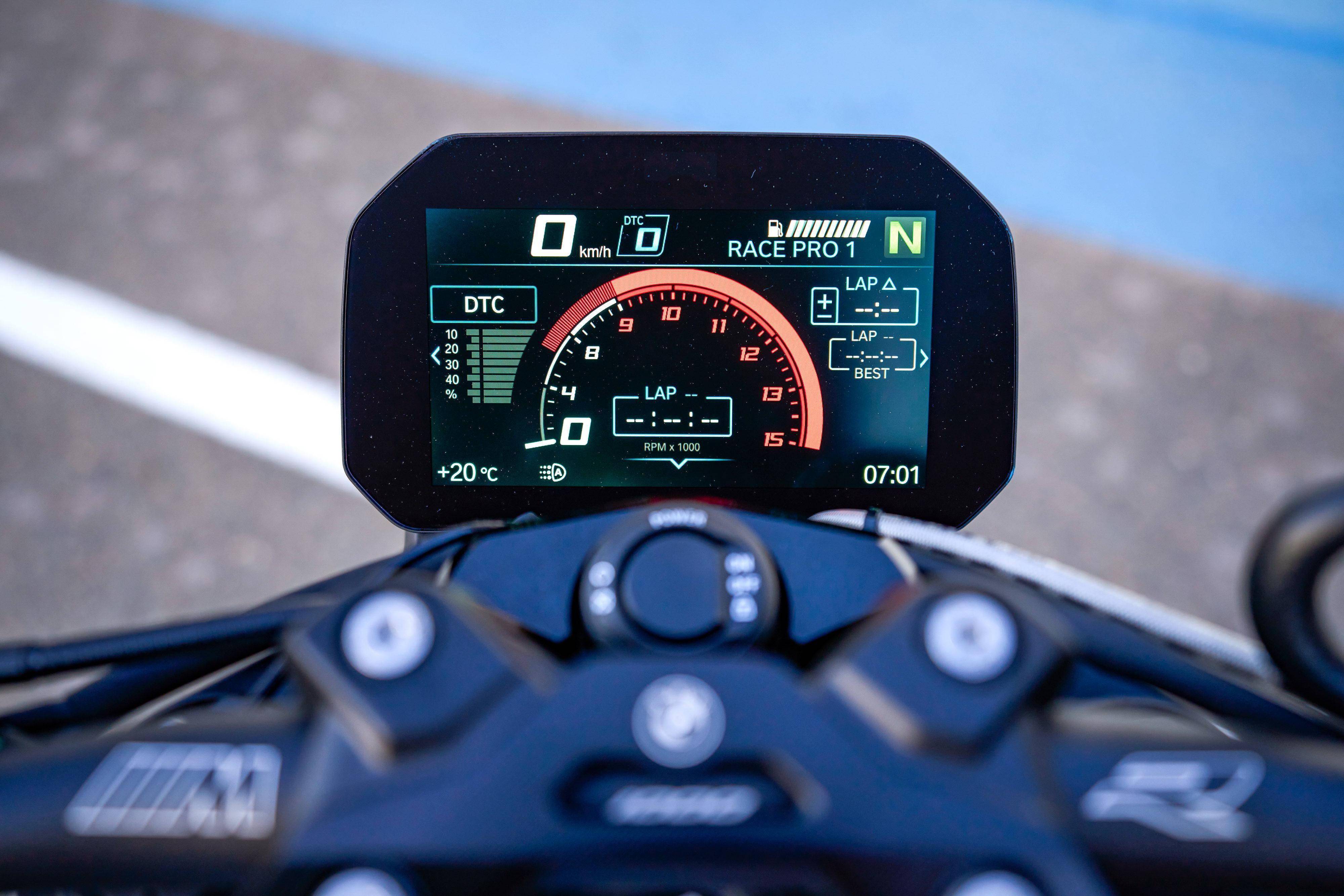 7、電控系統(tǒng)中,騎行模式、動(dòng)力輸出模式(節(jié)氣閥輸出特性)、DTC 動(dòng)態(tài)牽引力控制系統(tǒng),均增加的賽道模式;