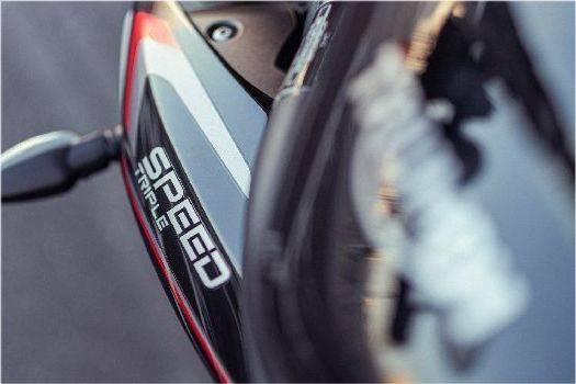 車(chē)身側(cè)面的SPEED TRIPLE 1200 RS字樣也做得非常精致
