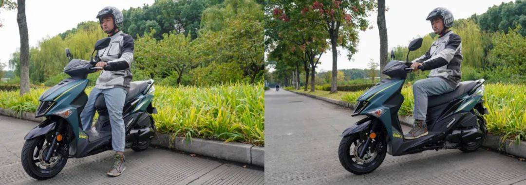 JET150SL座高為770mm,比一般踏板要高一點(diǎn),小編(177cm,75kg)正常騎乘時(shí)雙腳全腳掌著,172身高的則只能前腳掌著地。由于運(yùn)動(dòng)化設(shè)定,腳踏板離地間隙明顯大于常規(guī)踏板,177身高的我感覺雙腿微上挺,在小半徑轉(zhuǎn)彎手把打到底時(shí),手指會(huì)擦到膝蓋,主要是JET150SL的手把靠前且偏低的運(yùn)動(dòng)化設(shè)定,這在操控車輛時(shí)更為輕松,對(duì)與車輛所遇到的路面狀況感知也更清晰。畢竟魚和熊掌不可得兼,明顯偏向運(yùn)動(dòng)化的車型,好好感受該車在彎道中的魅力才對(duì)。