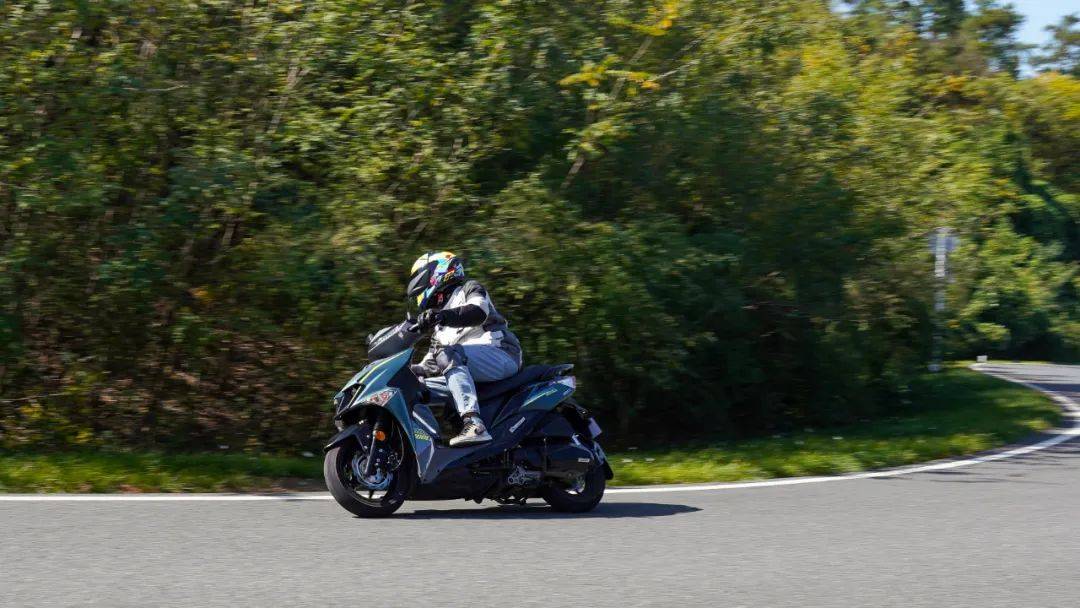 所有的運(yùn)動(dòng)細(xì)節(jié)講完,來到了這臺(tái)JET150SL的重頭戲,彎道的駕乘。在一段短短1.3公里的山路,藏有7個(gè)彎道,對(duì)于車輛的整體都是一個(gè)較高的考驗(yàn),入彎前制動(dòng),穩(wěn)住油門,控制車輛的速度進(jìn)彎,再給大油出彎,油門響應(yīng)迅速,出彎速度攀升可以說是酣暢淋漓。