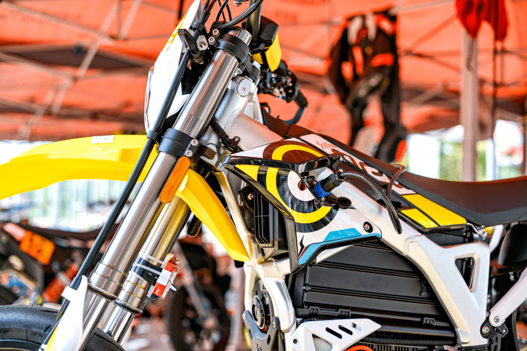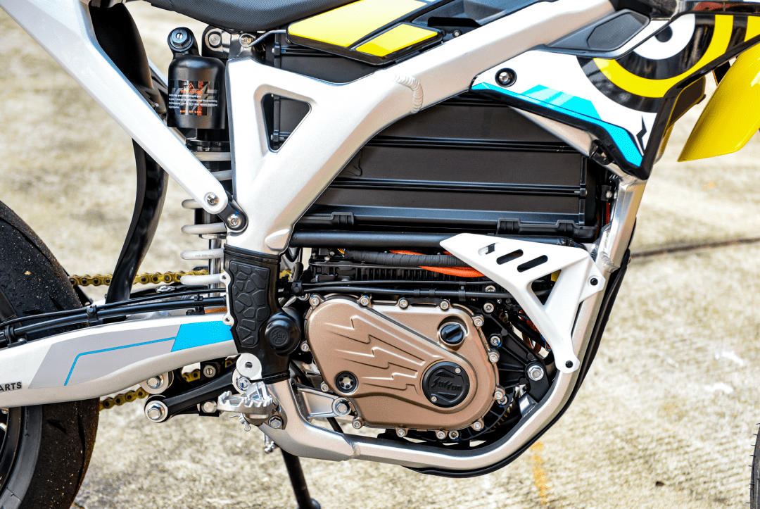 520 N.m 的輪上扭矩意味著什么?考慮到這臺電動越野車使用電子控制動力輸出模式、沒有傳統(tǒng)的變速齒輪箱,其的傳動系統(tǒng)的損耗并不大(相對于燃油騎式車而言),這一數(shù)值接近于電機(jī)的原始數(shù)據(jù)。作為對照,Kawasaki H2R 的最大扭矩輸出為 165 N.m(歐洲版),超級跑車 YZF-R1 的最大扭矩輸出為 113 N.m、ZX-10RR 為111.8 N.m(歐洲版)。