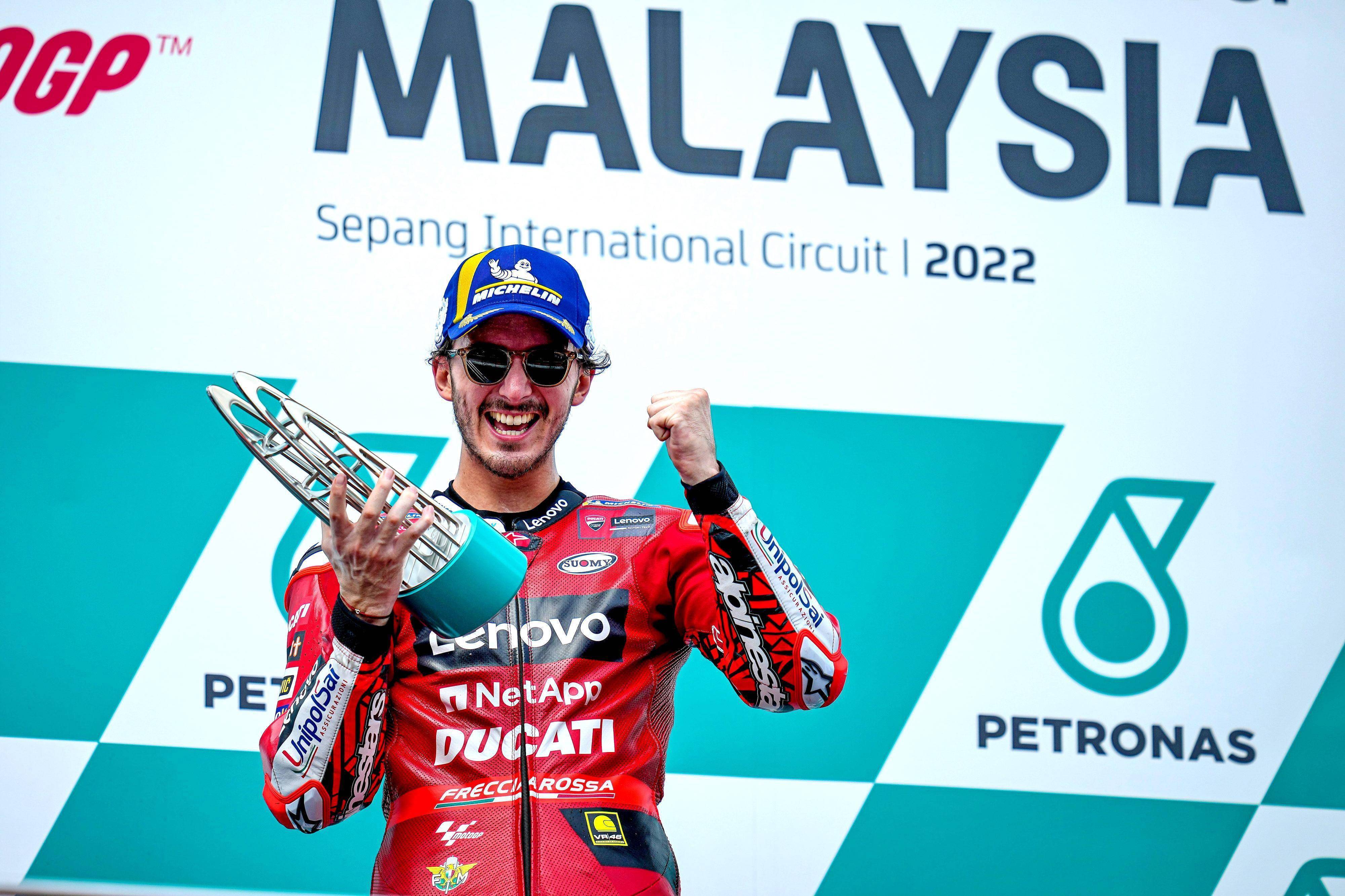 MotoGP 馬來西亞雪邦站的比賽之后,杜卡迪工廠車隊的車手巴納亞(Francesco Bagnaia)以 258 分排在積分榜的首位,領(lǐng)先優(yōu)勢有 23 分,本周進行的 2022 賽季最后一個分站比賽里,他只要拿到第十四名(即使同分之下,他也能以較多的分站冠軍數(shù)字而獲勝)或更好的成績,就可實現(xiàn)杜卡迪今年在 MotoGP 里的大滿貫:同時奪得了車手、制造商、車隊的世界冠軍。