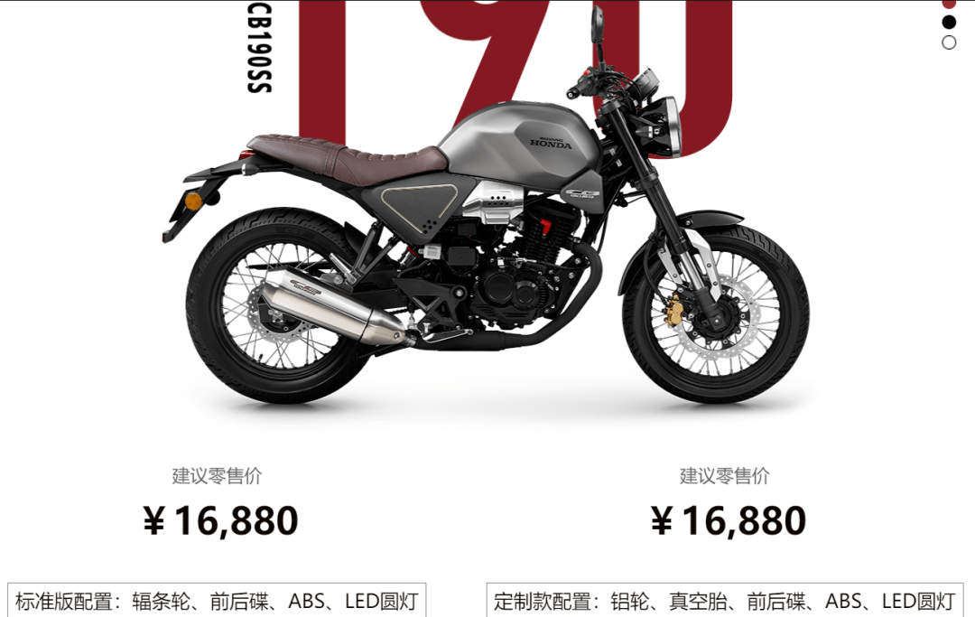 核心提示:官方目前有兩種配置,大致區(qū)別就是,鑄鋁輪有真空胎;輻條輪非真空胎這么個區(qū)別。嚴格意義來說,CB190SS并不能算作一款復(fù)古車,