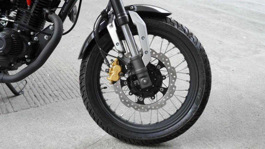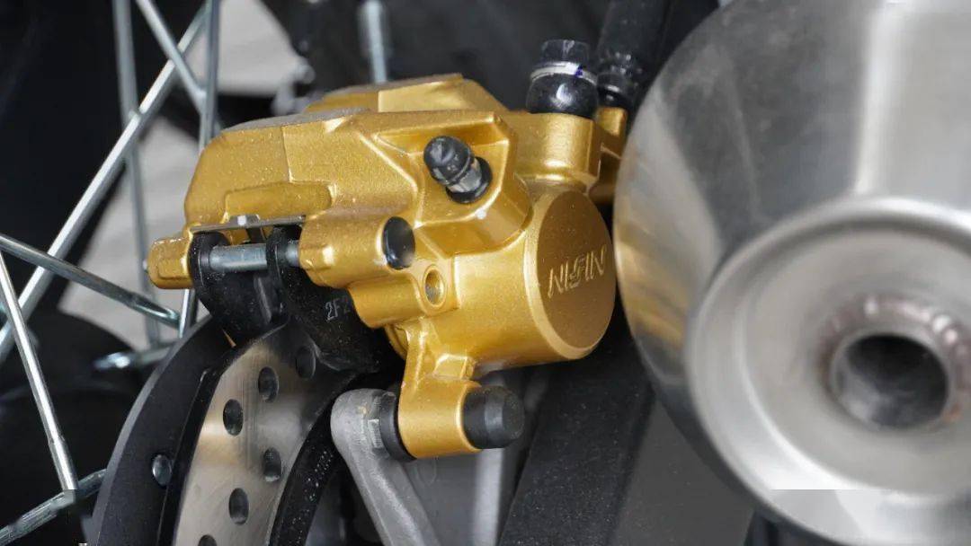 輻條圈版本是有內(nèi)胎的,如果不考慮改輪胎這一點影響不大。前剎車采用日清雙活塞卡鉗,后剎車采用日清單活塞卡鉗,搭載ABS系統(tǒng)。采用倒置前叉和中置后減震。輪胎采用前110/70-17,后140/70-17的輪胎組合。