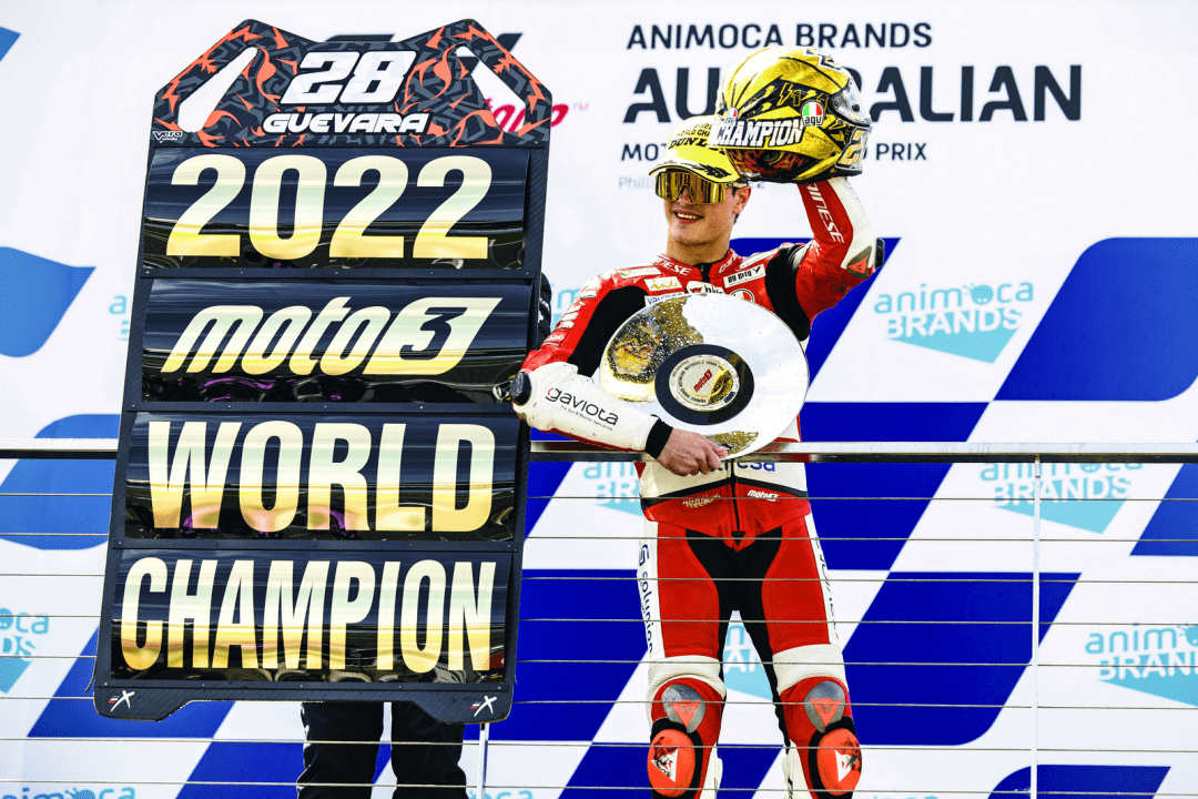 現(xiàn)年 18 歲的古瓦拉是 2019 年歐洲天才杯(European Talent Cup)的冠軍,2020 年 FIM CEV Moto3/FIM Moto3 JuniorGP 青少年世界錦標(biāo)賽的年度總冠軍,去年首次進(jìn)軍世界錦標(biāo)賽 Moto3 級(jí)別,并奪得了一個(gè)分站冠軍。在今年已結(jié)束的十八個(gè)分站比賽里,古瓦拉四次排頭位出賽,共奪得了六個(gè)分站冠軍、累計(jì)十一次登上頒獎(jiǎng)臺(tái)。