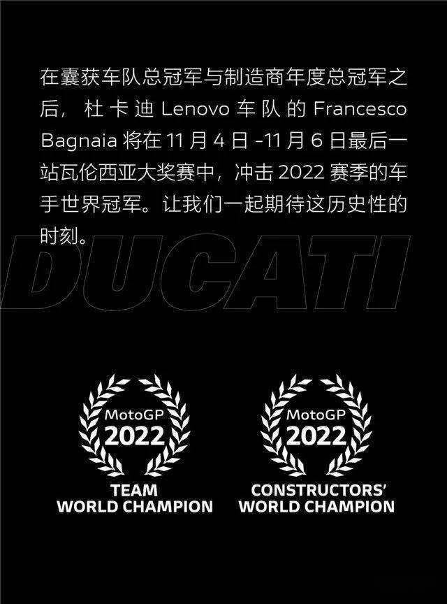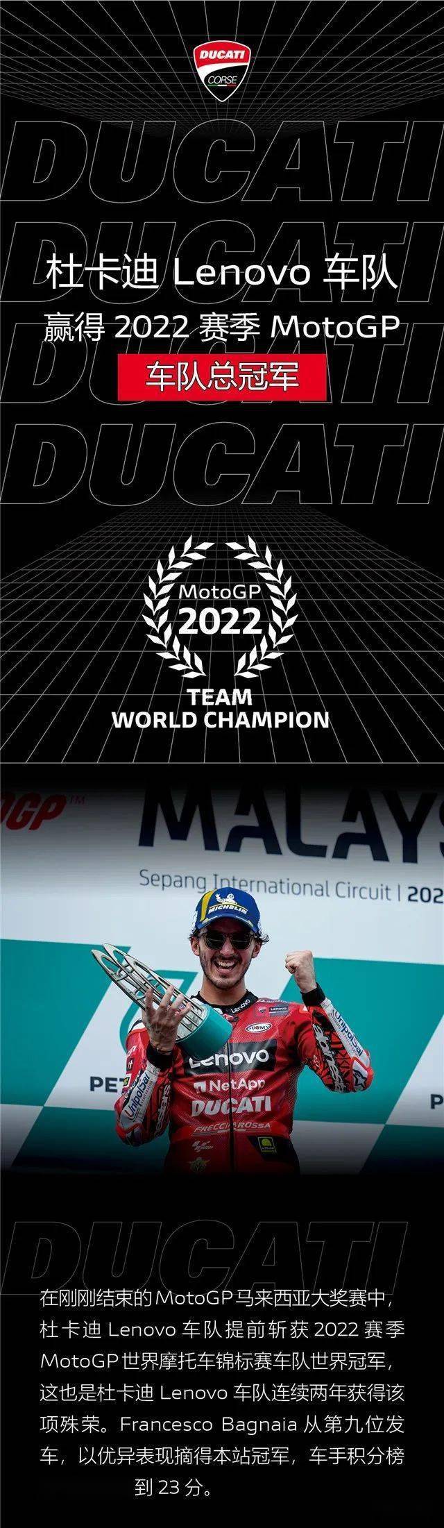 核心提示:杜卡迪 Lenovo 車隊贏得 2022 賽季 MotoGP 車隊總冠軍