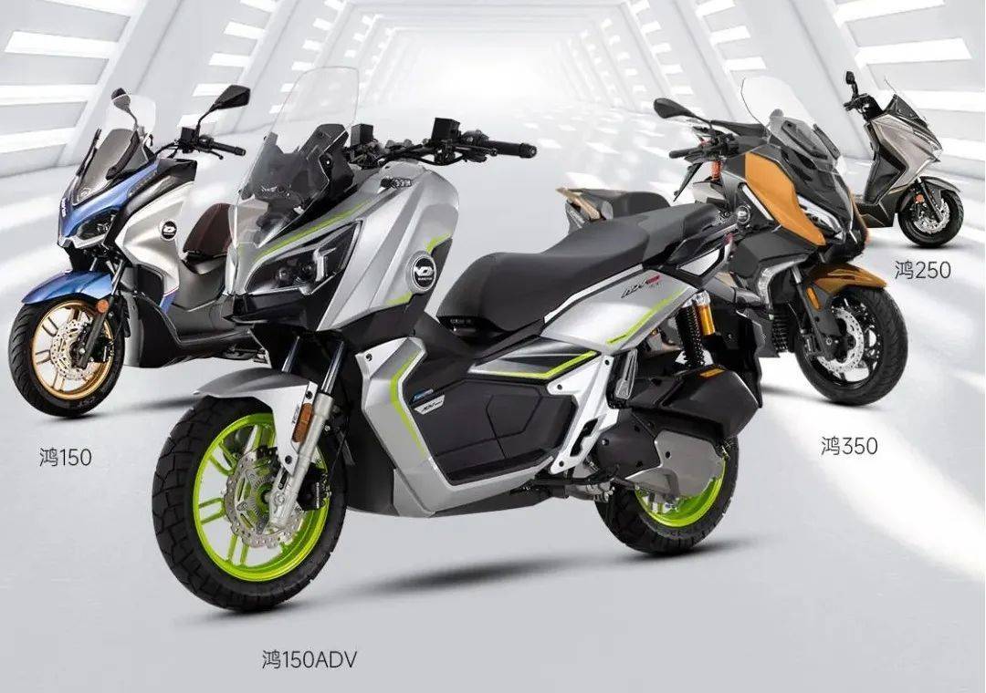 此外之前的預告車型中,還公布了一款鳥嘴踏板,看上去有些像是前段時間經歷“后減震氣瓶風波”的鴻150ADV,目前該車已經在國內上市,售價16999元。主要賣點包括150cc水冷發(fā)動機,混合8秒電動助力、脈沖點火、怠速啟停、胎壓監(jiān)測、雙通道ABS、TCS牽引力控制??缃缤庥^和非鋪裝能力也是吸引人的地方,當然有了之前的烏龍事件后,減震系統(tǒng)應該會得到加強。而“鴻”系列踏板還有三、四款新車,排量涵蓋125-350cc,能不能借這次機會正式發(fā)布上市呢。