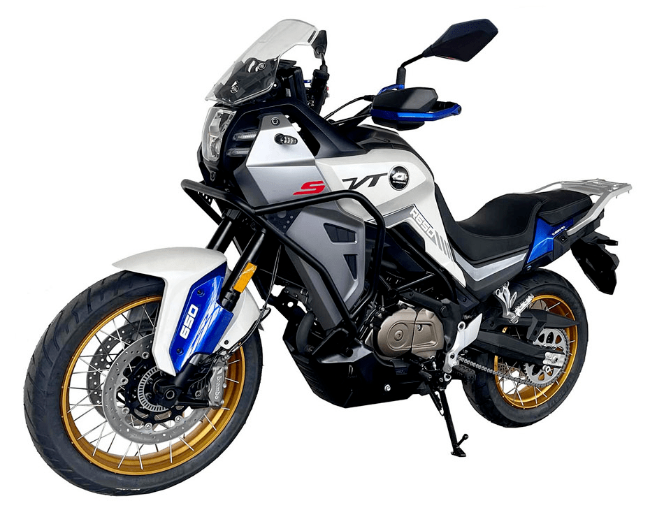 除了SVT 650拉力,還首次曝光了一款全新街車SRK 800,大燈和排氣都比較新穎。發(fā)動機排量754cc,最大馬力76匹,應該是和貝納利TRK702有些淵源,配有Marzocchi減震、Brembo M4.32剎車卡鉗、博世ABS。而SVT 650國內的信息比較多了,就不再贅述。