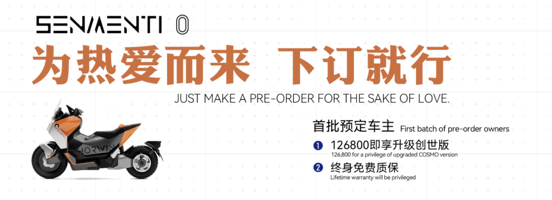 這款適用于多場(chǎng)景、多功能、多用途的跨界車型Senmenti 0已開(kāi)啟預(yù)定,中國(guó)首批預(yù)定車主享有特殊權(quán)益,126800即可升級(jí)創(chuàng)世版,并享受終身免費(fèi)質(zhì)保。(預(yù)定鏈接,請(qǐng)搜索“HORWIN號(hào)外”小程序)