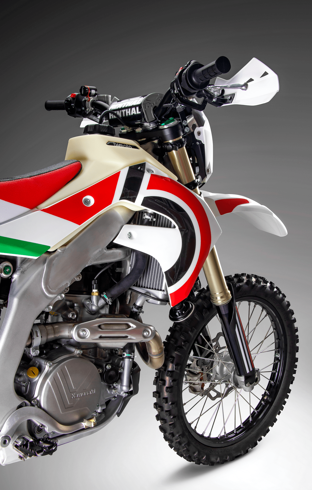 廠方為 BX450 冠以 The Extreme Enduro “ 極限的耐力越野 ” 之名、限量生產(chǎn),以 Kawasaki 的市售型耐力越野賽車 KX450X 為基礎(chǔ),配以 “ Bimota 獨(dú)特的工藝 ” 制作而成。