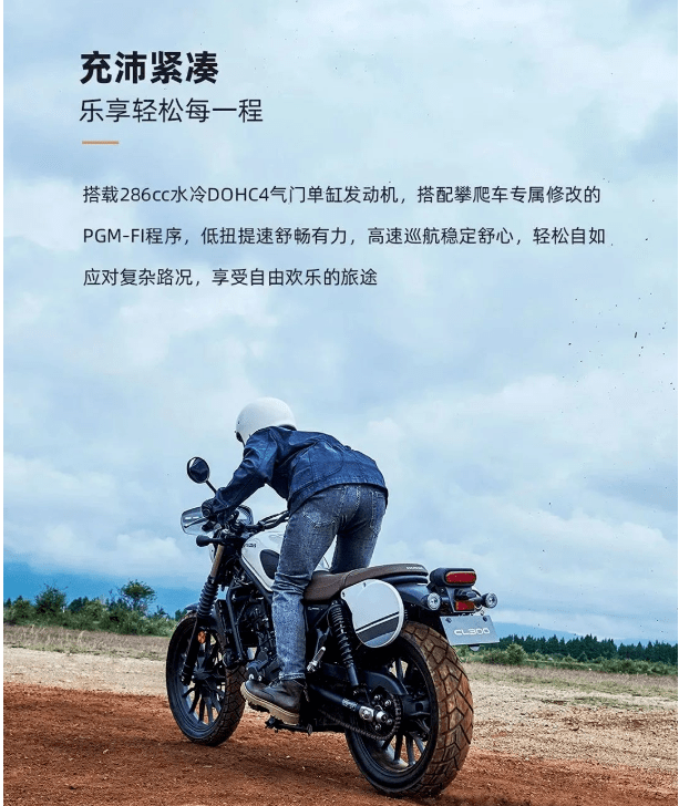 主要區(qū)別就是發(fā)動(dòng)機(jī),配備的應(yīng)該是CM300的同款單缸動(dòng)力,不過(guò)沒(méi)有公布具體參數(shù),可能會(huì)有一定調(diào)整。