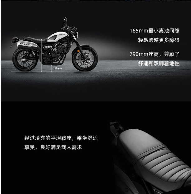 CL300外觀與CL500高度相似,坐高同樣是790mm,油箱容積同樣為12升。其他配置也都相同。