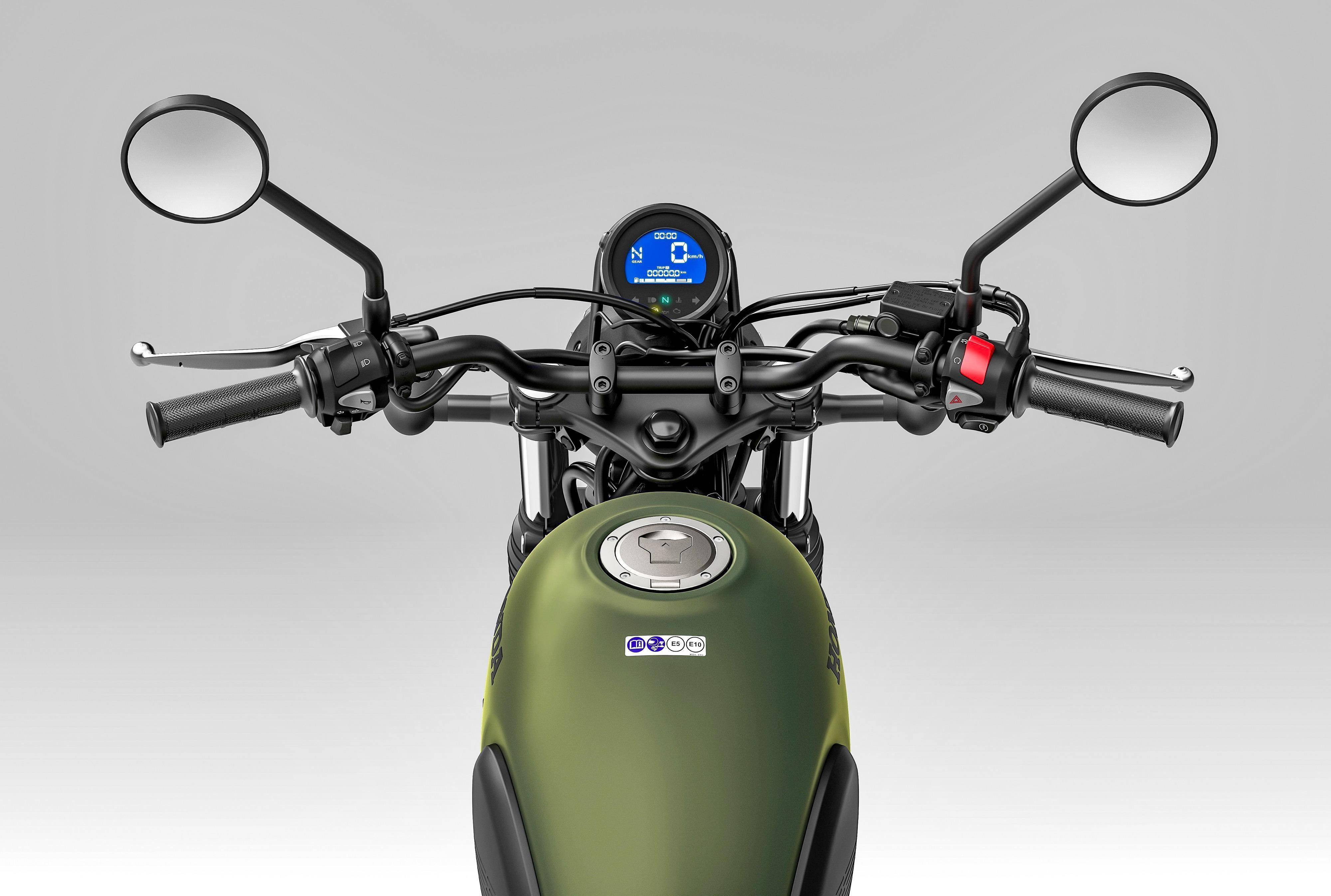 3、多處采用了人體工程學的設計,讓新的 CL500 很容易騎乘:鞍座高度為 790 mm、接近油箱的部分變得纖細,讓駕駛員的腿部空間更加充足,同時也便于雙腳落地;油箱尾部的兩側配備了護墊,為雙腿在站立騎行時提供另一個接觸點;越野風格的車把、有著精確的角度,無論是站立還是坐著騎行,都能提供良好的杠桿作用、以降低駕駛疲勞;
