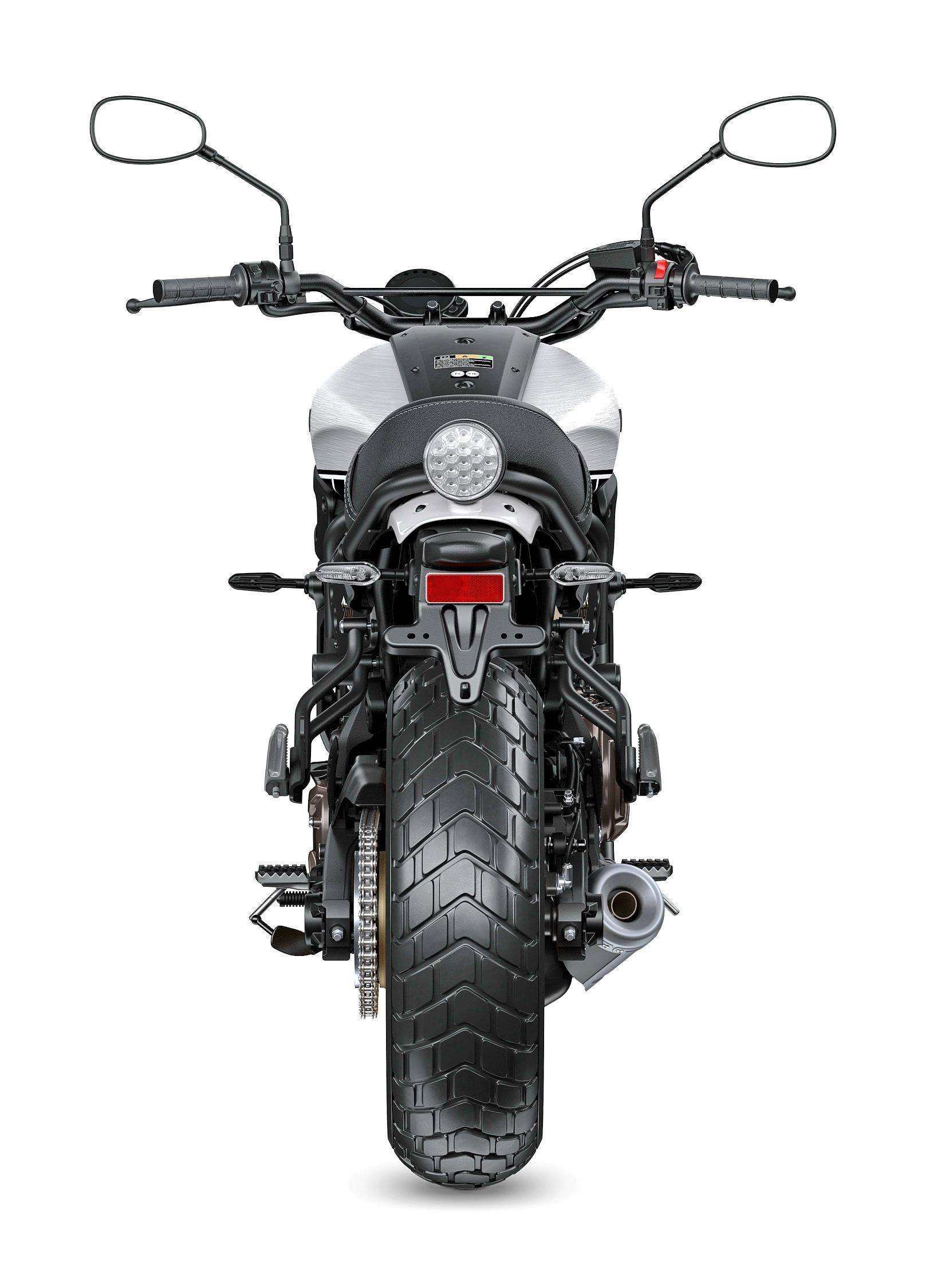 車體方面,沿用了鉆石型鋼管式車架、鋁合金制的后搖臂,Scrambler 復(fù)古越野的外觀風(fēng)格,正立式的前叉、接近于水平式聯(lián)接的單筒式后減震,圓型的前大燈、后剎車燈,圓型外觀的數(shù)字式儀表,塑造出一個經(jīng)典的線條。能為騎士帶來 “ 控制機(jī)器的實(shí)感和喜悅 ”,是廠方對該車的寄語。