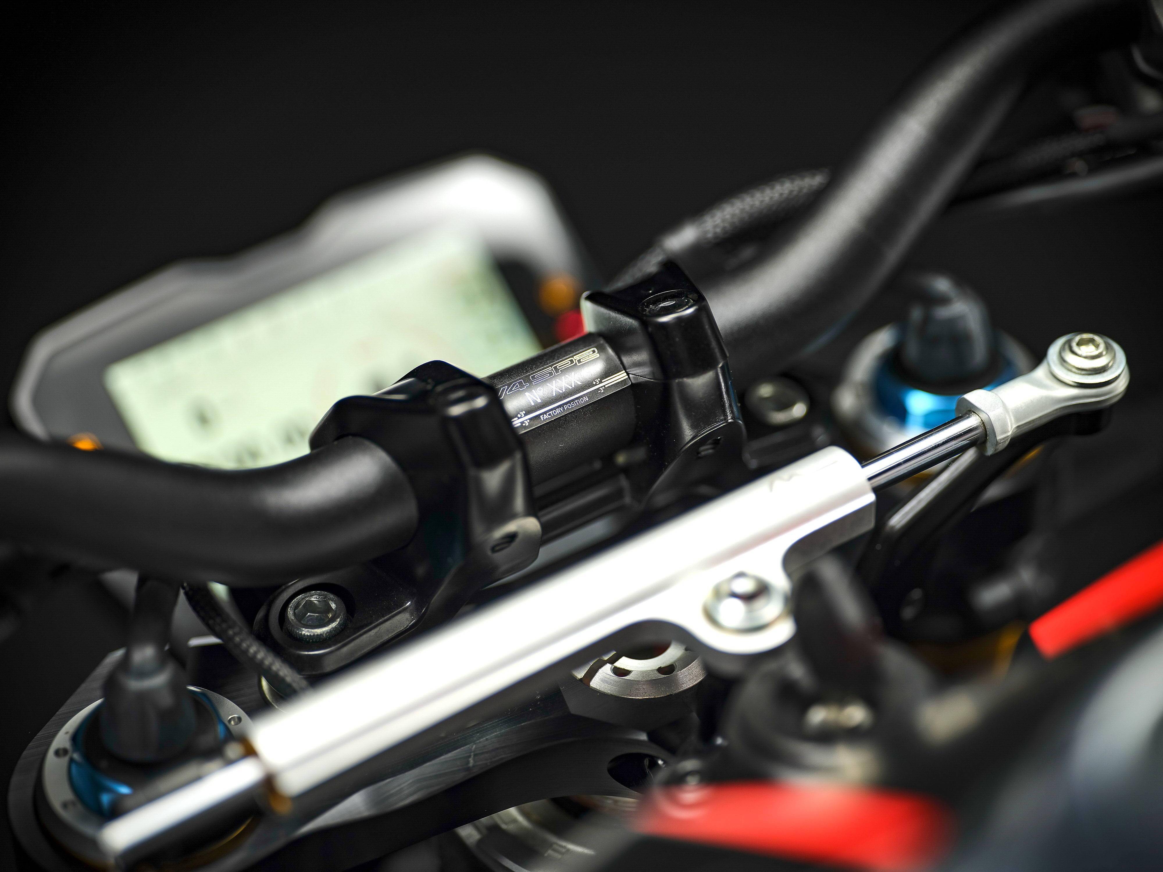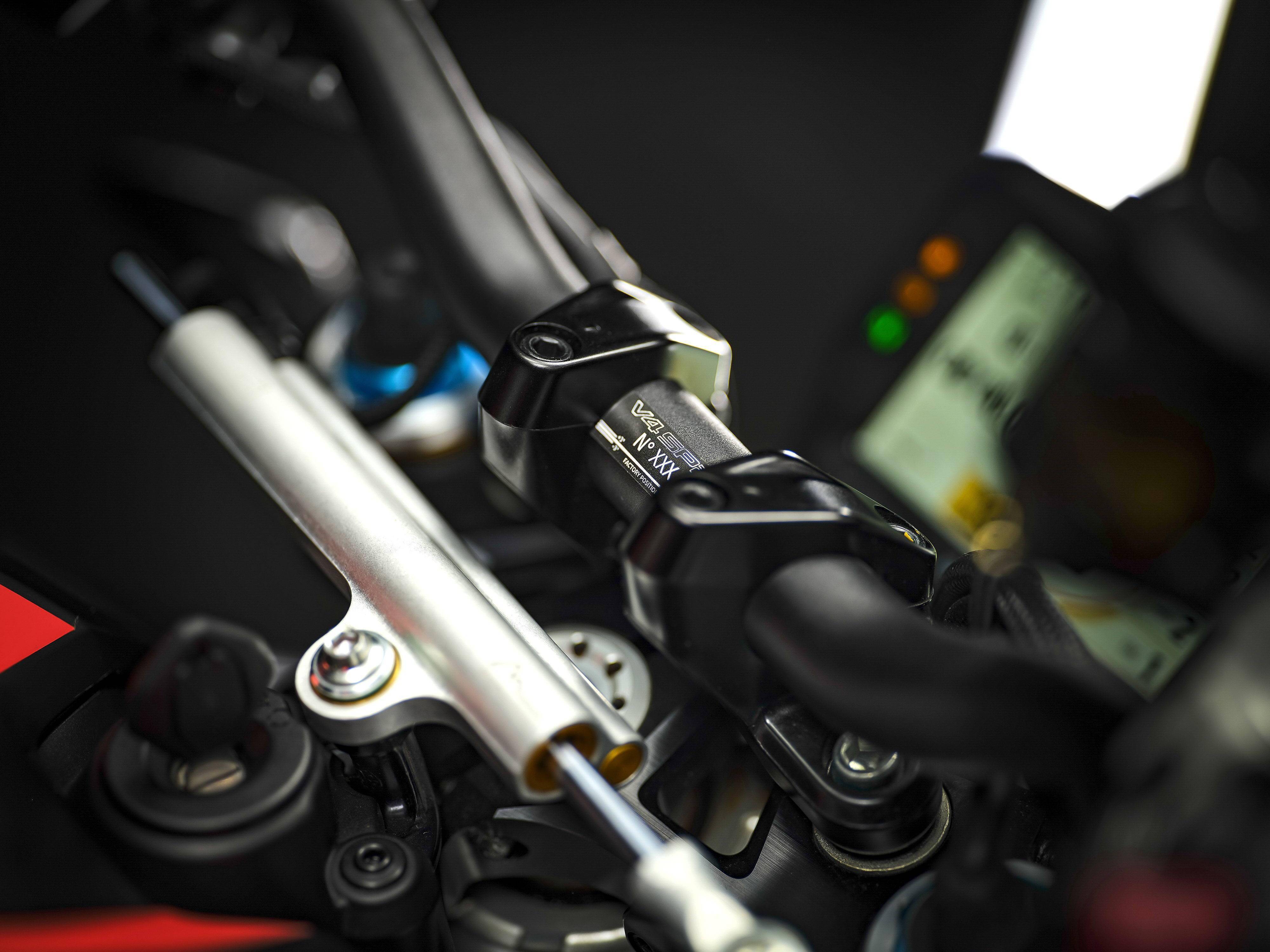車體方面,采用了一個(gè)承載式設(shè)計(jì)的、重量只有大約 4 公斤的鋁合金車架,2023 版本車型的后懸掛連接樞軸升高了 4 mm,從而獲得了更高的穩(wěn)定性、精度,有助于騎士在出彎時(shí)以及在所有加速域之下、仍保持著良好騎行軌跡控制的能力。此外,重量分布也朝著前方輕微移動(dòng),增加了負(fù)荷,從而提高了入彎的速度和軌跡的準(zhǔn)確性。